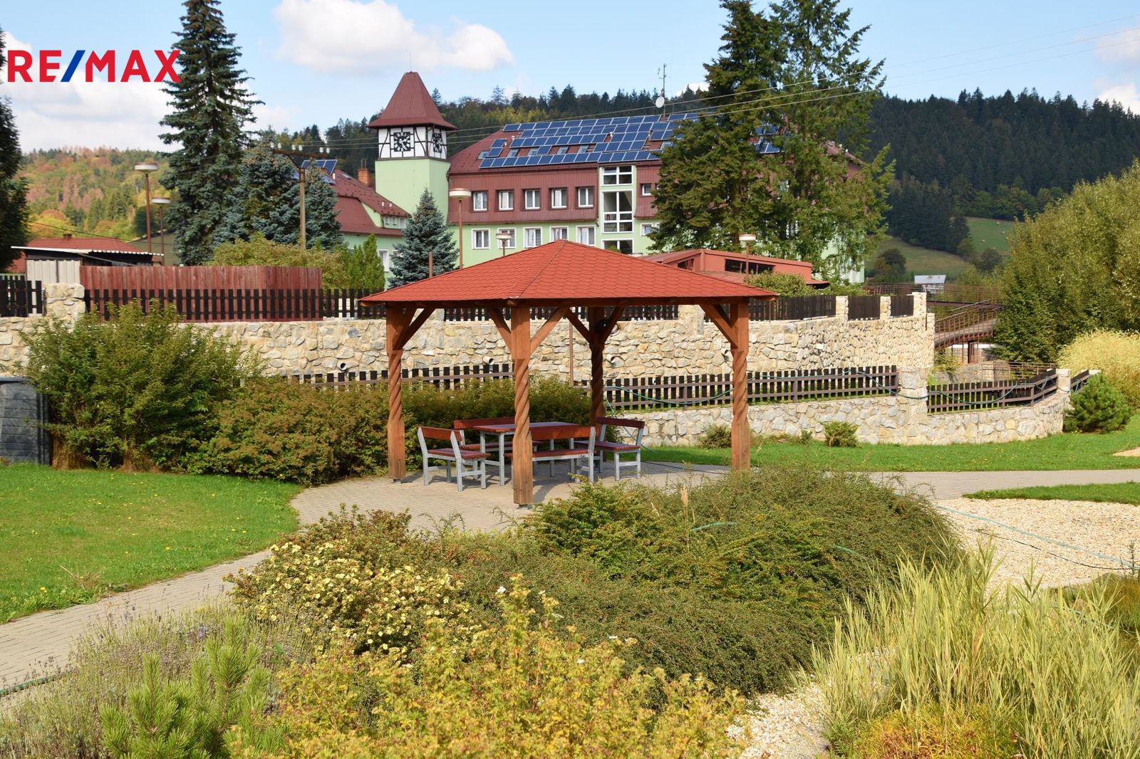 • kompletně oplocený areál, upravená zahrada, bezbariérový terén