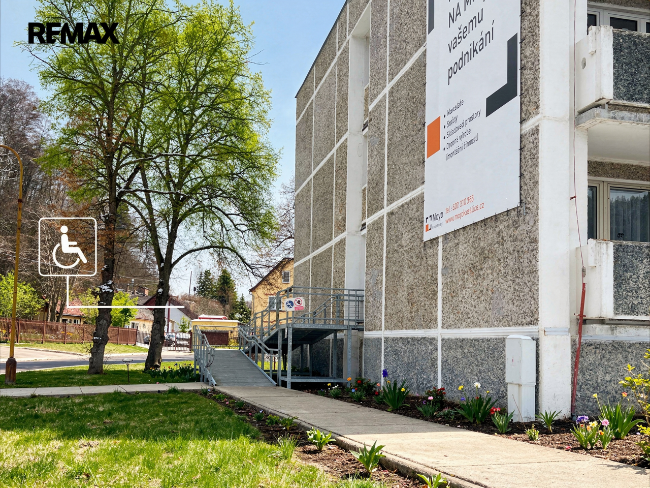 Centrální poloha objektu zajišťuje výbornou dopravní dostupnost, vysokou viditelnost a snadnou dostupnost služeb.