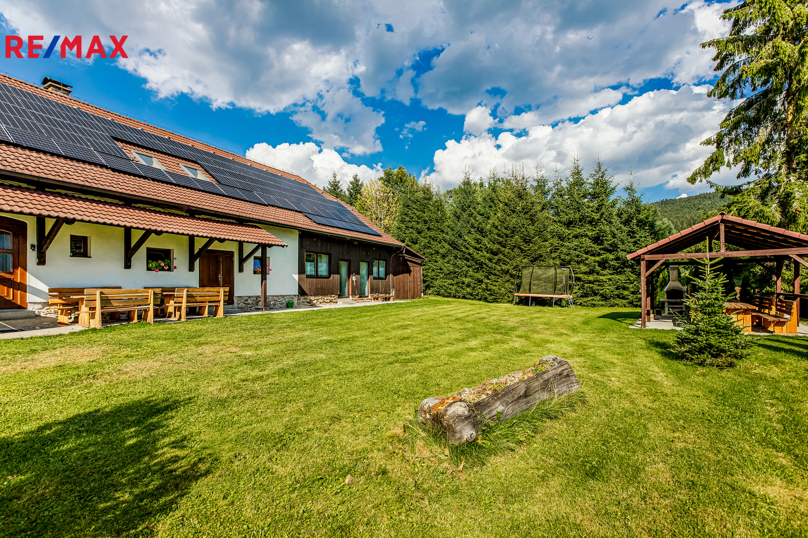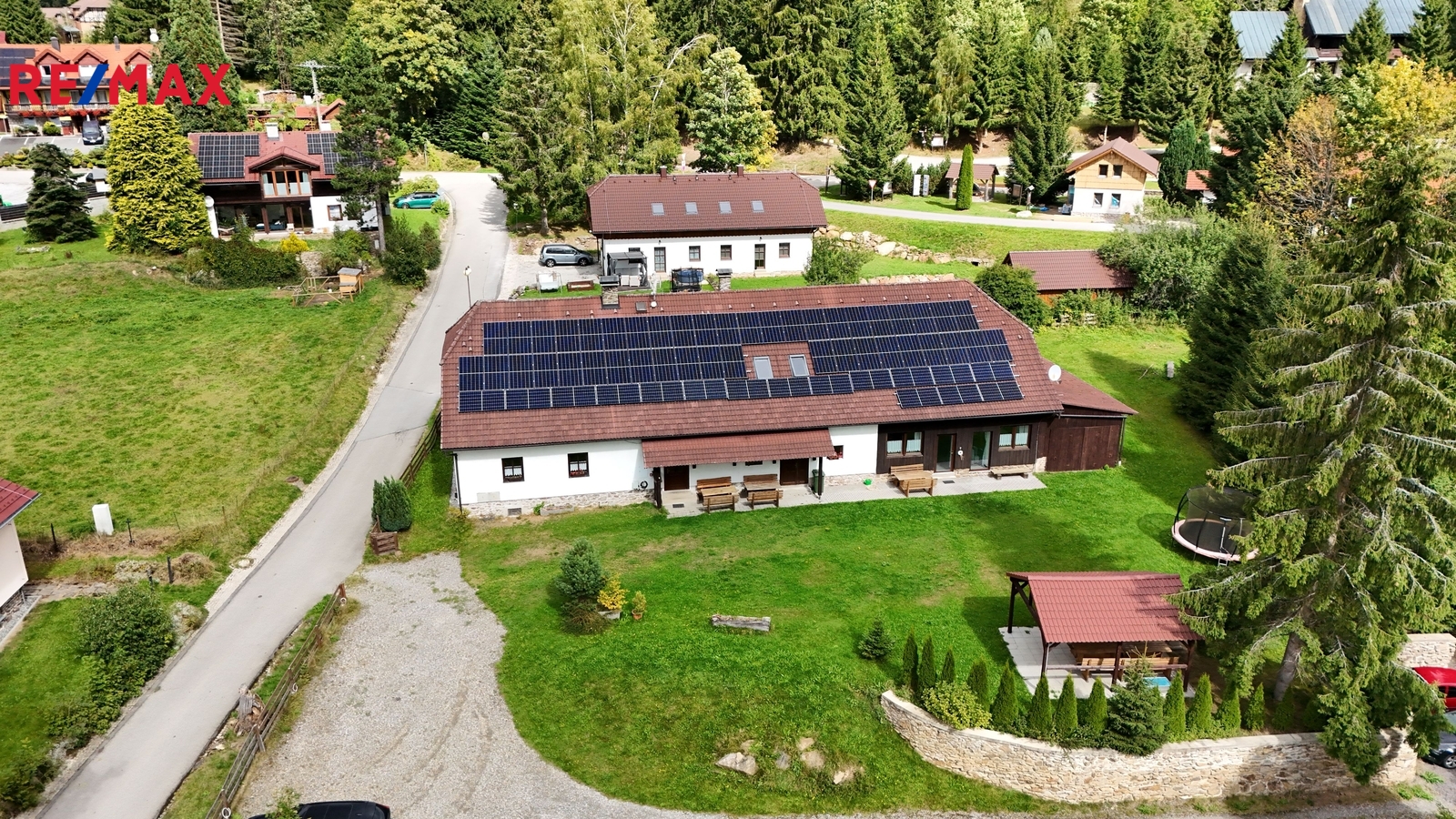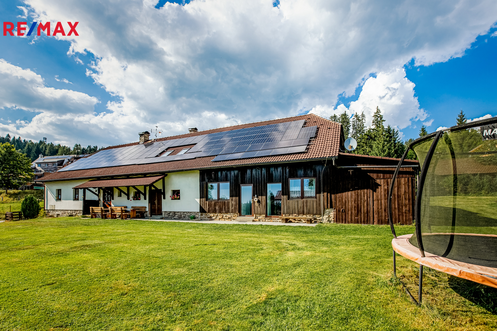Penzion je vybaven moderními technologiemi, které výrazně snižují provozní náklady – vytápění zajišťuje tepelné čerpadlo se zemními vrty, doplněné fotovoltaickou elektrárnou o výkonu 30 kWp. Bezpečnost objektu posiluje kamerový systém. Celková zastavěná plocha činí 546 m² , včetně garáže, lyžárny a kolárny a k dispozici je pozemek o velikosti 2 090 m². Zahrada je dostatečně veliká, aby poskytla všem ubytovaným soukromí.
