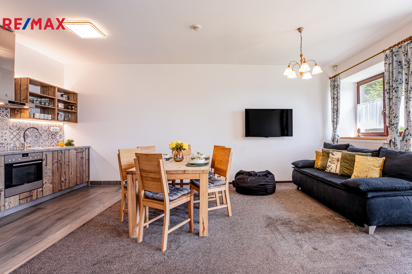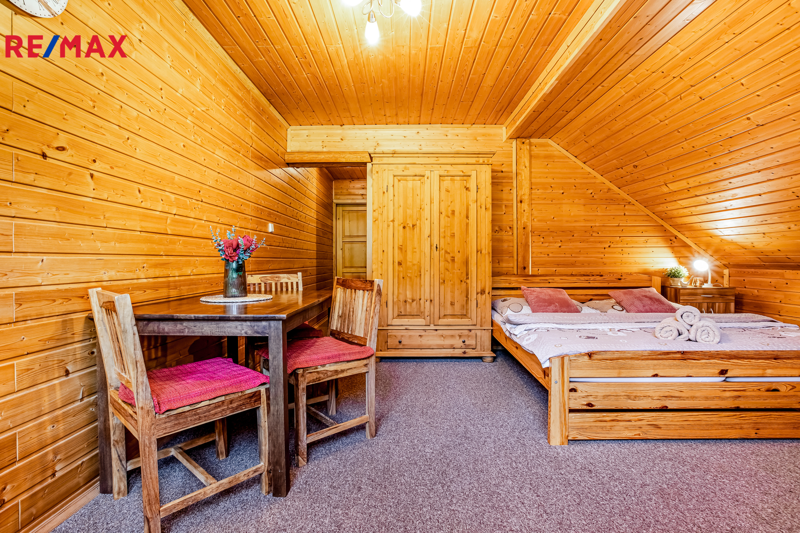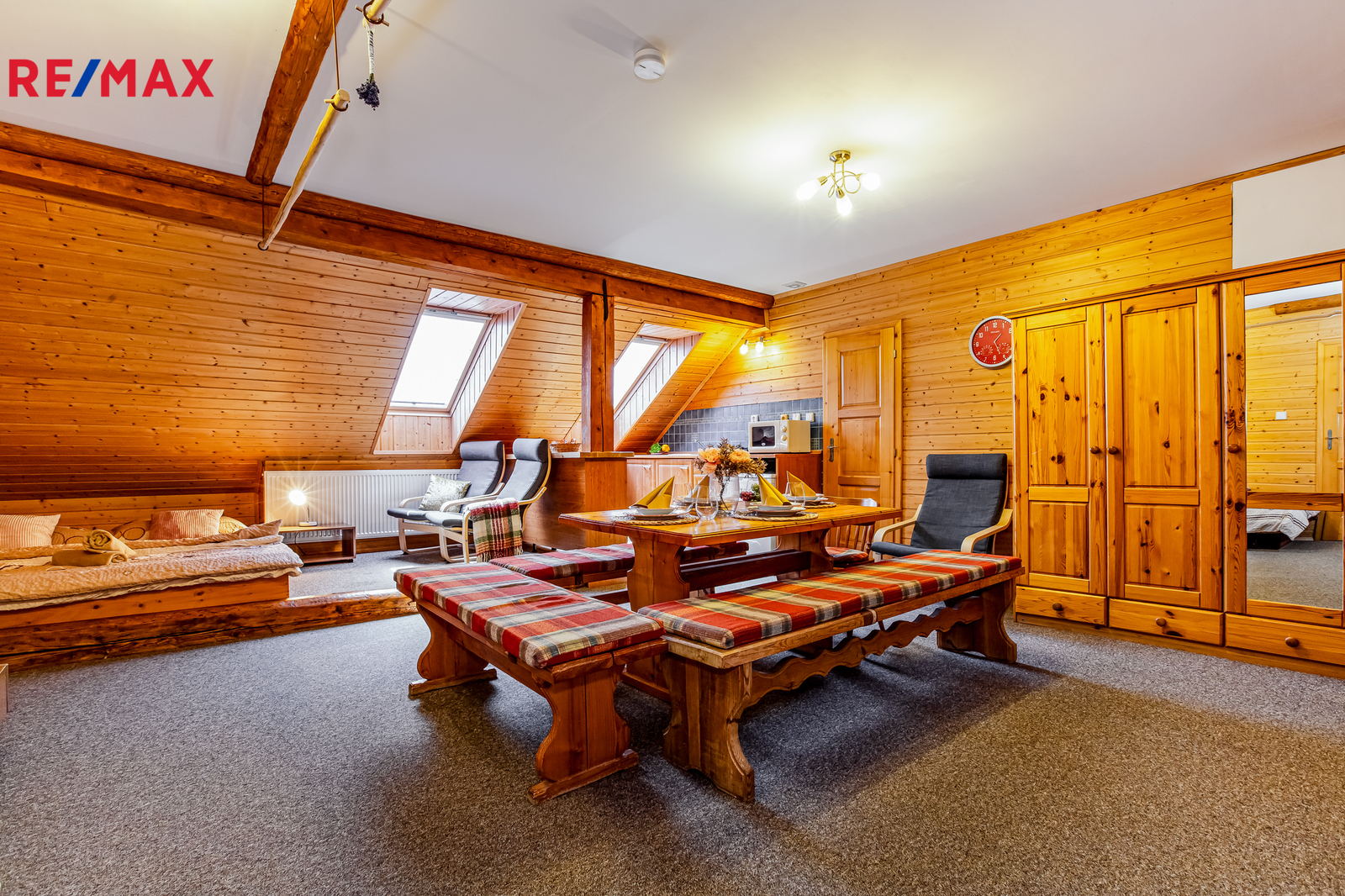 Nabízíme k prodeji zavedený stylový penzion v oblíbené lokalitě Kubova Huť na Šumavě. Objekt po částečné rekonstrukci (2019) nabízí 5 stylově zařízených apartmánů s celkovou kapacitou až 30 lůžek a je připravený k okamžitému provozu bez nutnosti dalších větších investic. Každý apartmán je plně vybavený – nechybí kuchyňský kout, vlastní koupelna a stylový nábytek. Největší apartmán je navržený až pro 10 hostů a disponuje dvěma koupelnami. Technické zázemí pro chod penzionu - pračka, komora pro úklid.