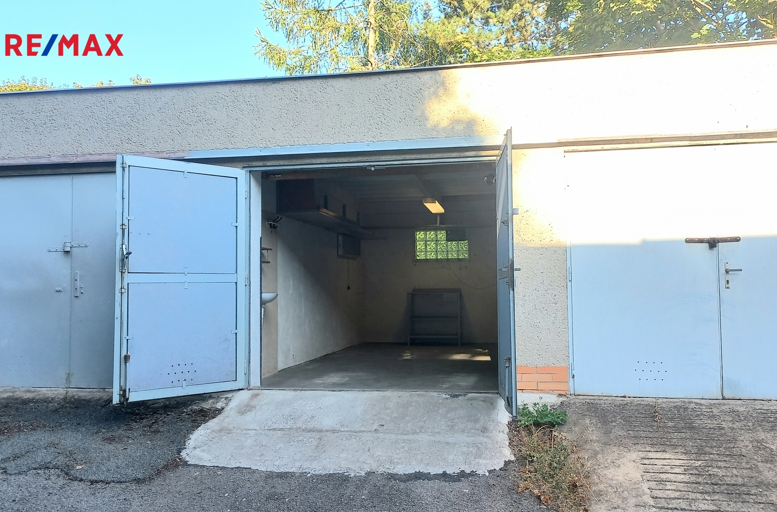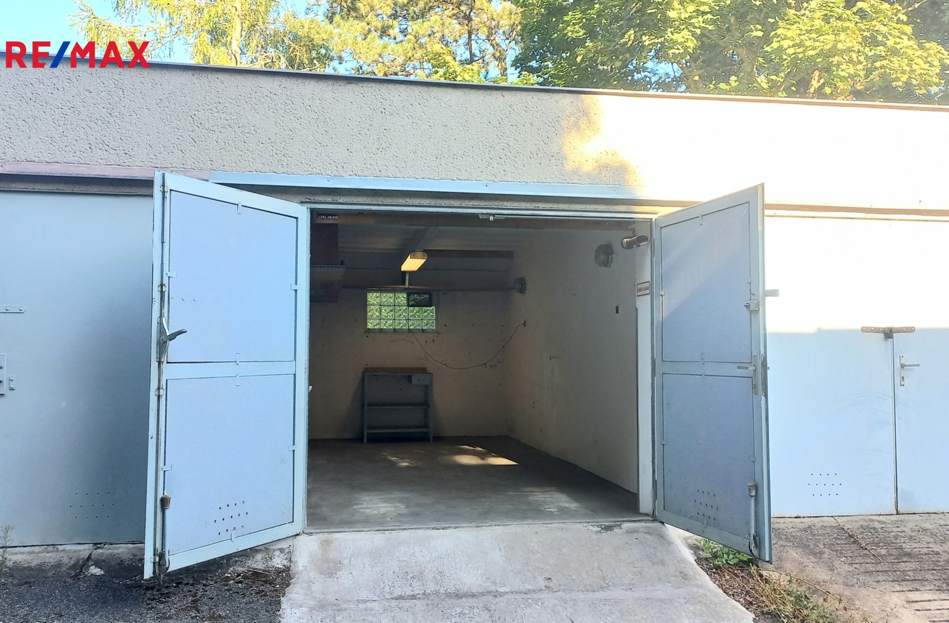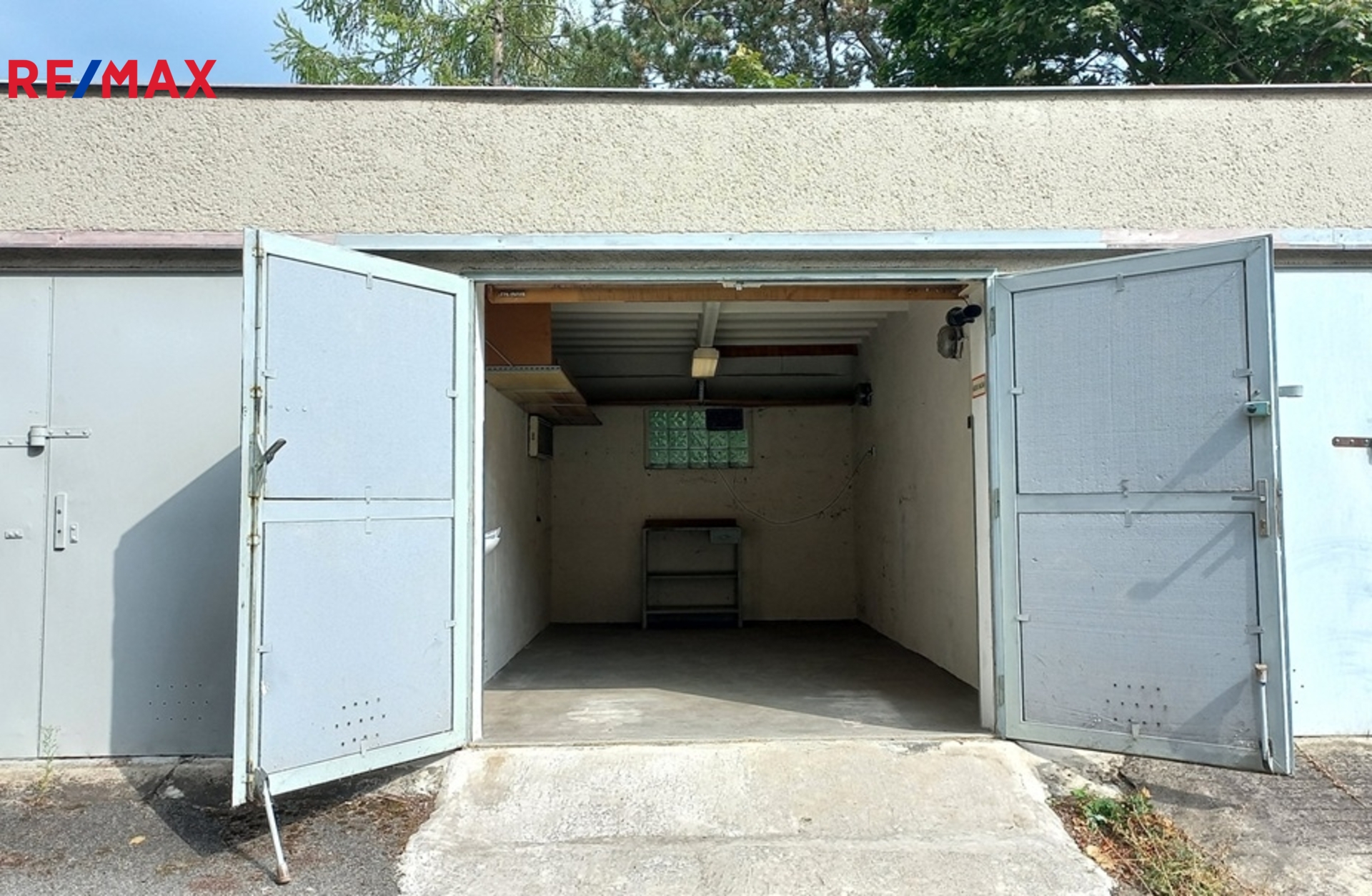 Jedná se o cihlovou stavbu řadové patrové garáže (horní box) s plochou střechou (asfaltová krytina). Postaveno asi v r.1990, betonová podlaha, plechová vrata, osvětlení a zásuvky v přední i zadní části garáže, elektřina 220 V, původní elektrorozvody s podružným elektroměrem. Parcela o velikosti 19 m2 je ve spoluvlastnictví prodávajícího. Vnitřní plocha garáže je cca 17 m2 (2,9 x 5,9 m), výška 2,6 m. Rozměry vrat: šířka 2,3 m, výška 2,1 m. Příjezdová cesta je ve vlastnictví majitelů garáží.