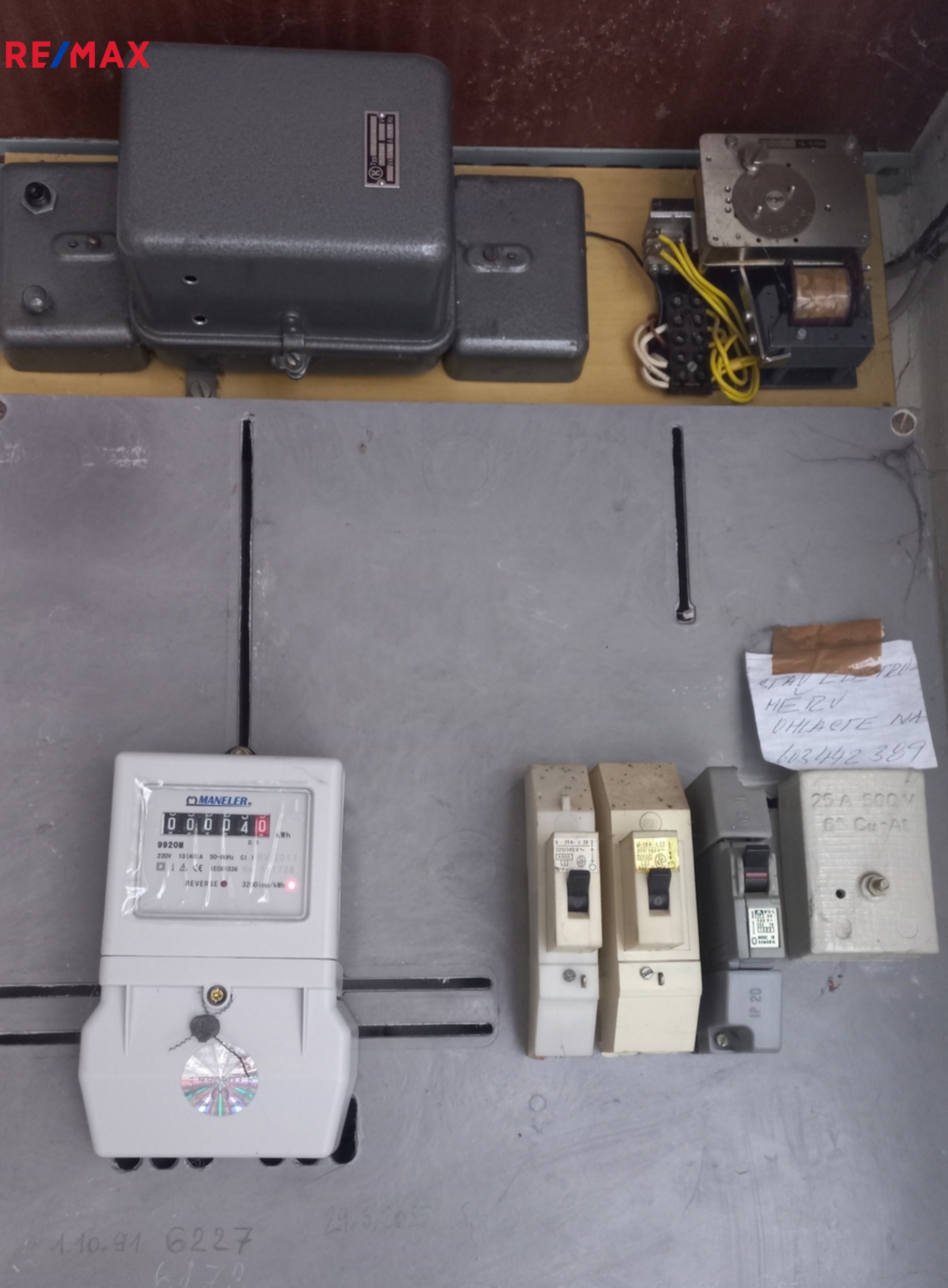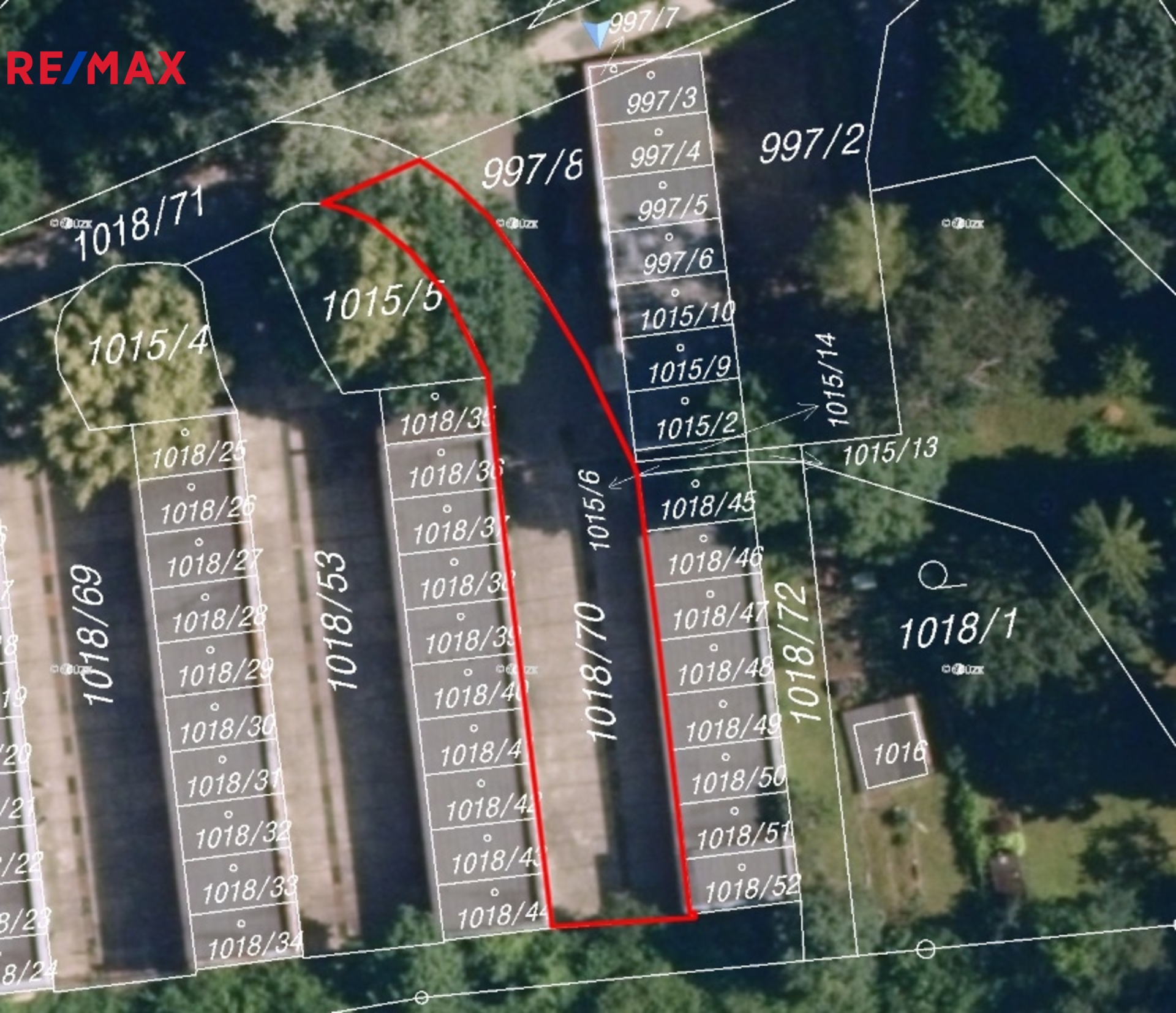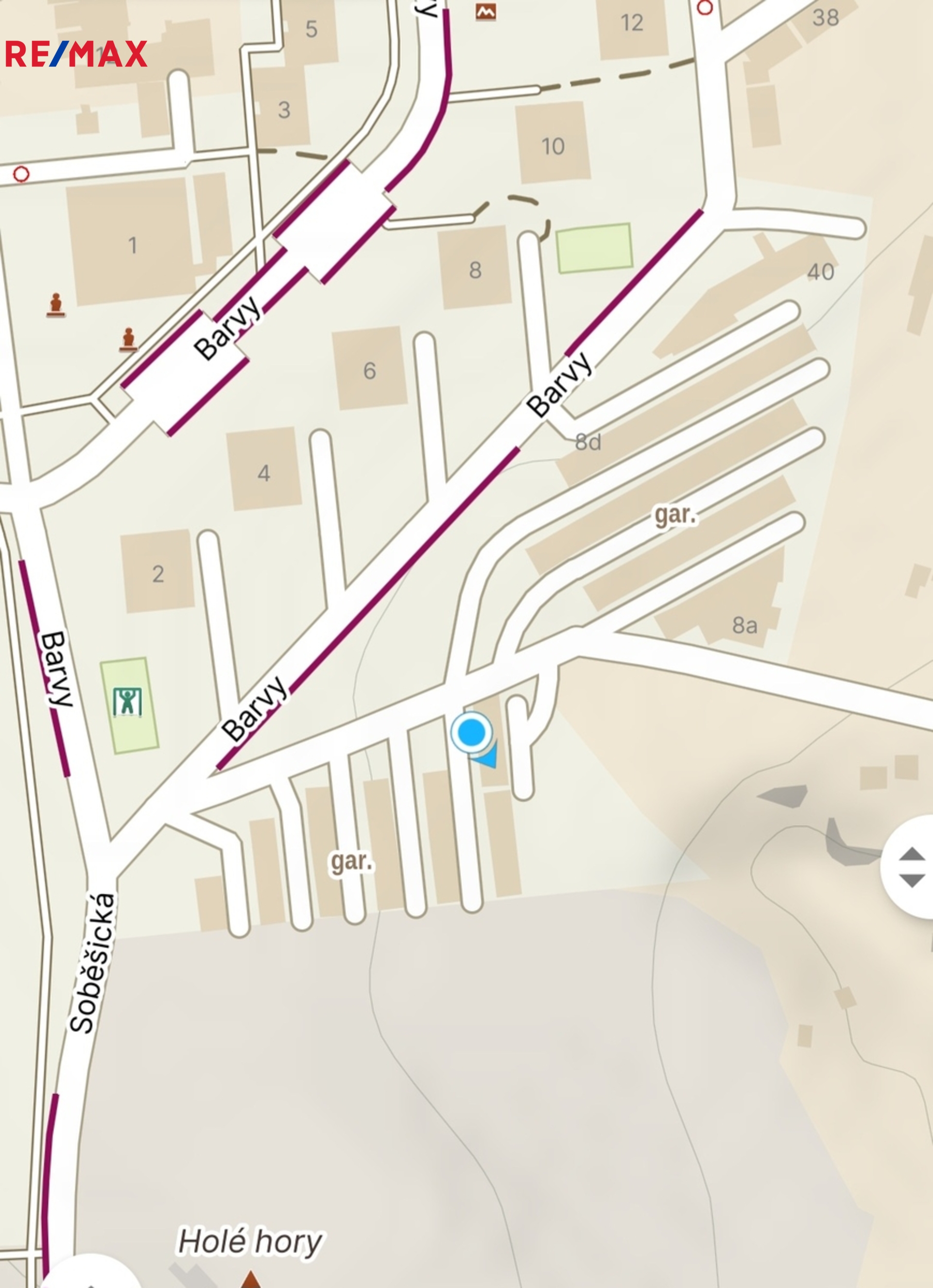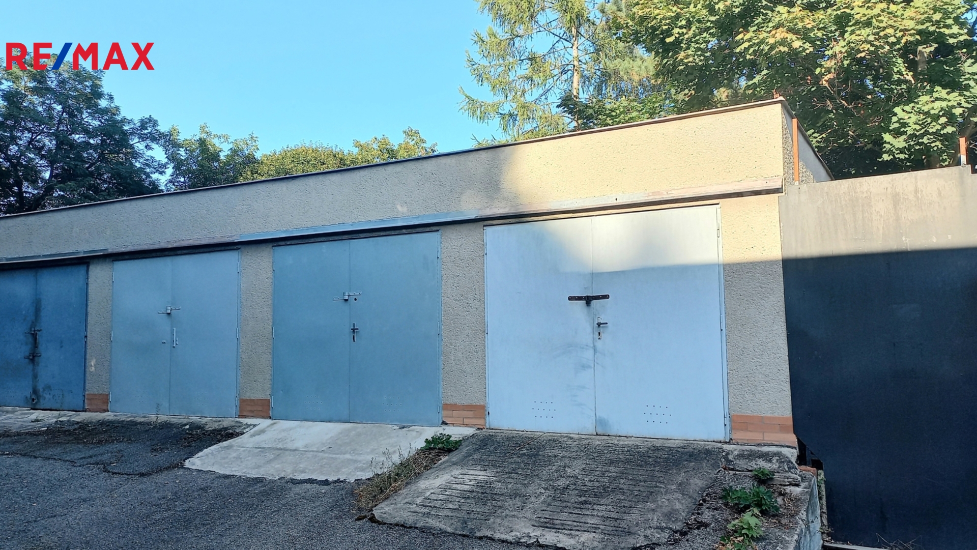Jedná se o cihlovou stavbu řadové patrové garáže (horní box) s plochou střechou (asfaltová krytina). Postaveno asi v r.1990, betonová podlaha, plechová vrata, osvětlení a zásuvky v přední i zadní části garáže, elektřina 220 V, původní elektrorozvody s podružným elektroměrem. Parcela o velikosti 19 m2 je ve spoluvlastnictví prodávajícího. Vnitřní plocha garáže je cca 17 m2 (2,9 x 5,9 m), výška 2,6 m. Rozměry vrat: šířka 2,3 m, výška 2,1 m. Příjezdová cesta je ve vlastnictví majitelů garáží.