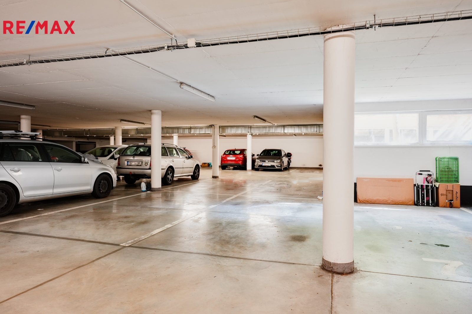 Garážové stání se nachází v přízemí bytového domu Leskauerova 4. Vjezd do společné garáže je z ulice Poslušného přes vrata na dálkové ovládání, případně je možný vstup přes dveře. Parkovací stání má rozměry cca 2,6 m x 5 m, výška vjezdu je pak 2 m.