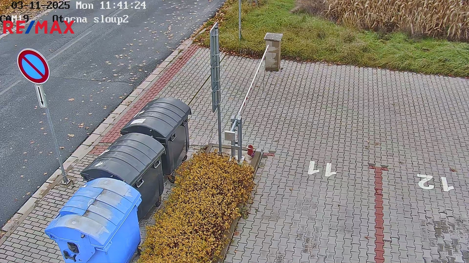 Vjezd na soukromý pozemek je zajištěn manuálně otevíranou závorou.