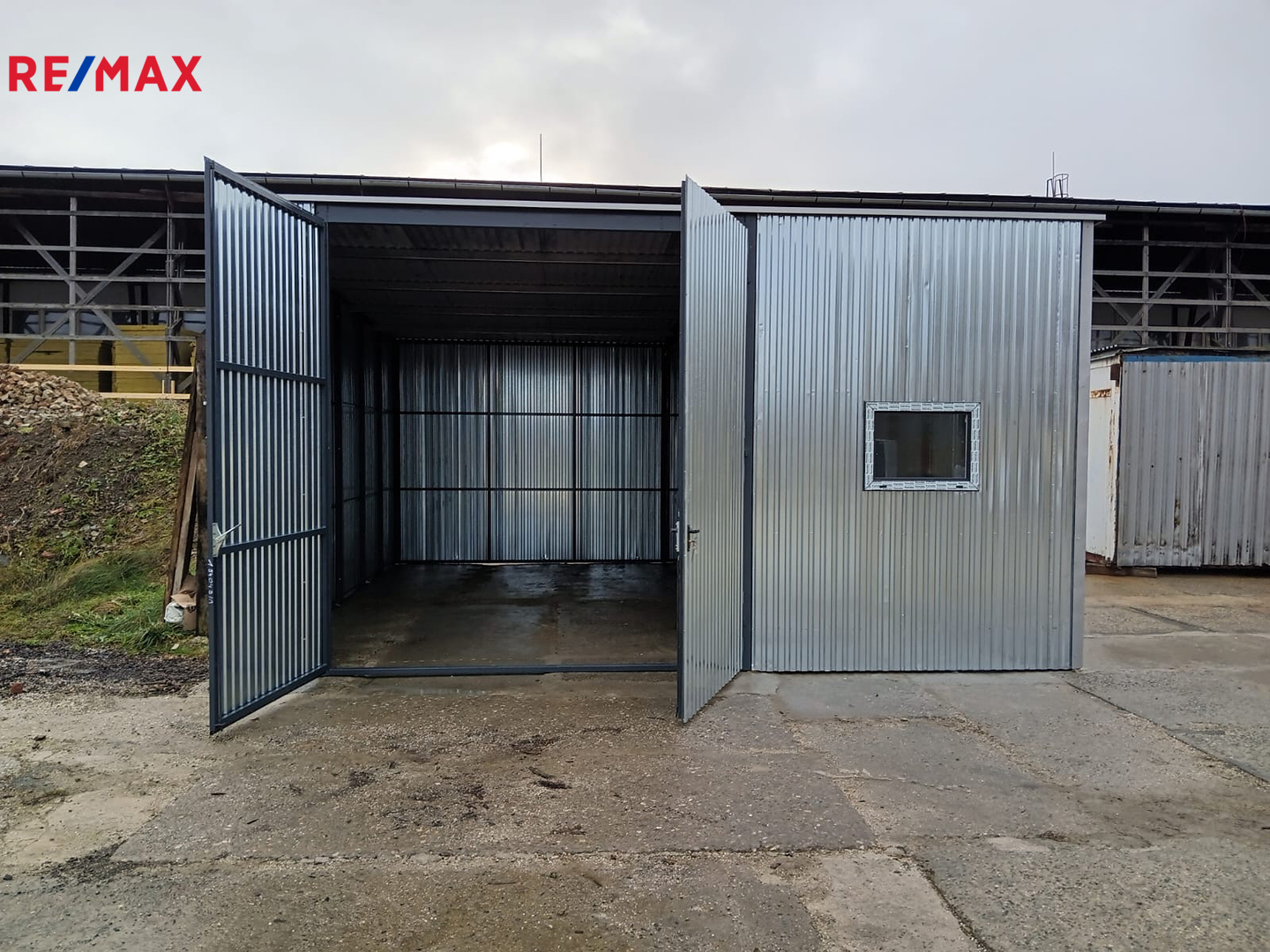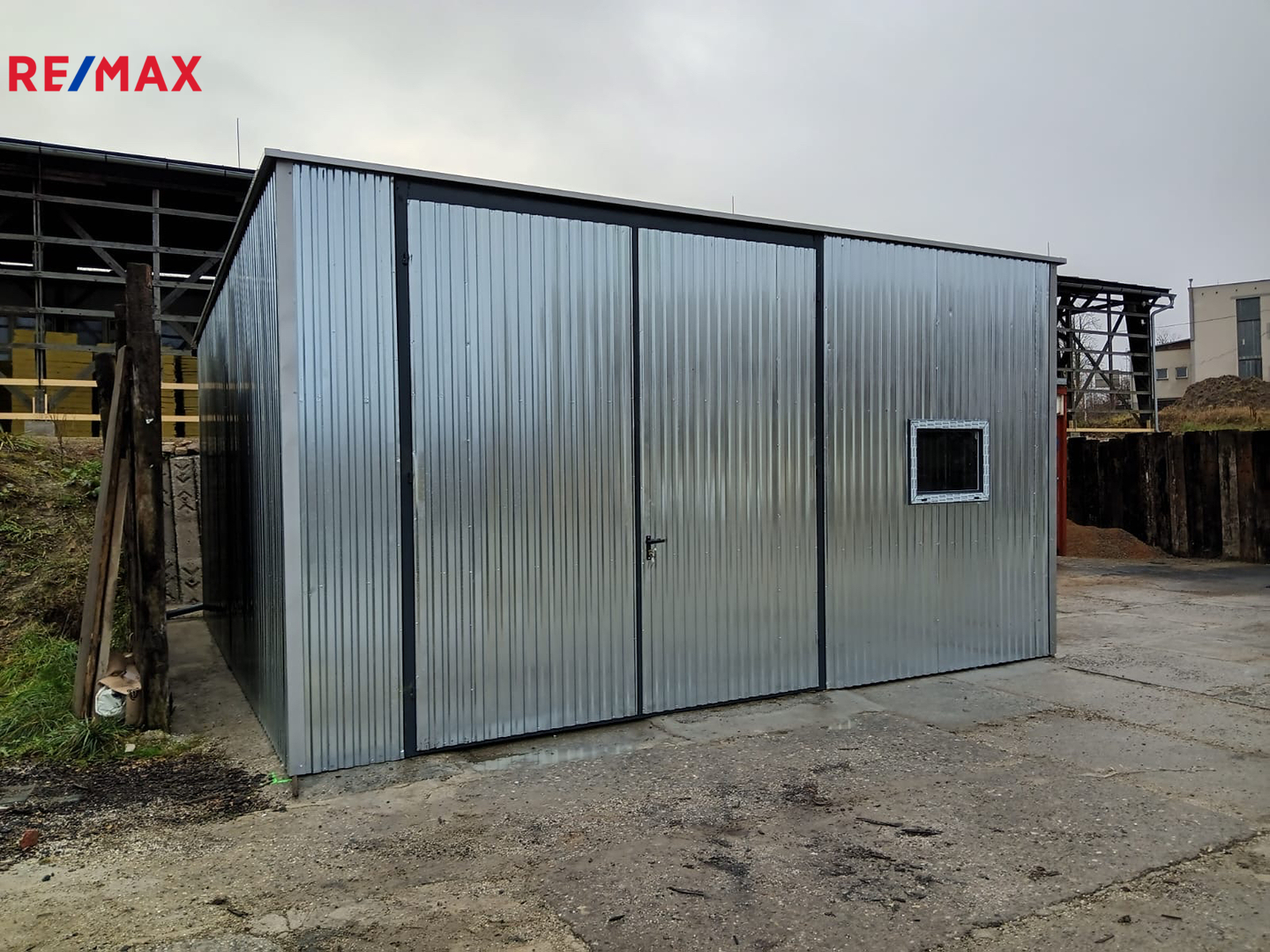 Rozměr: 6mx 6m, výška vrat 3 m. Střecha je potažena filcem proti rosení. Podlaha je betonová. Garáž se nachází v průmyslovém areálu, kamerový systém.