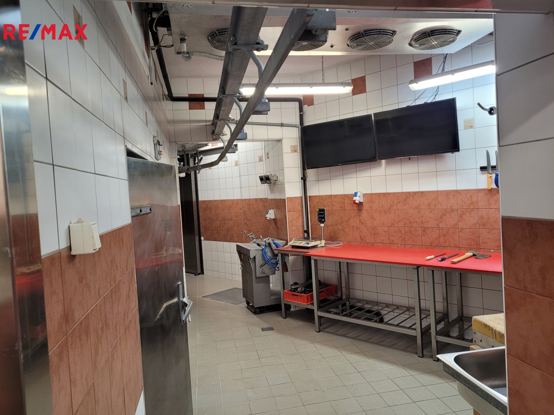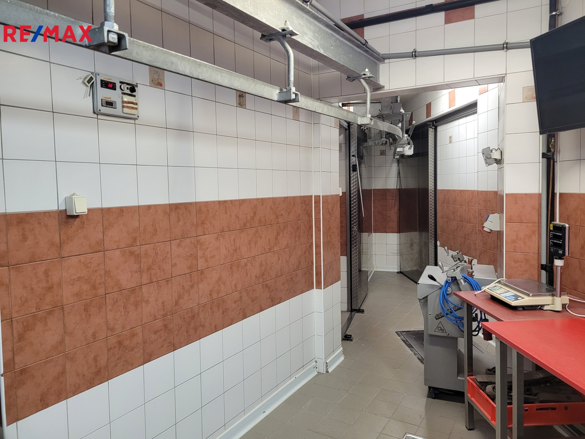 • 1.NP – prodejna s technickým zázemím pro vlastní provoz a činnost. Celý prostor je kompletně chlazený, a to již od nákladové rampy. Certifikovaná prodejna s povolením pro bourárenskou (červeného a bílého masa) a výrobní činnost. Prodejna je kompletně vybavena vč. skladově-pokladního systému, vážného systému vah do PC, datových rozvodů a kamerového systému.