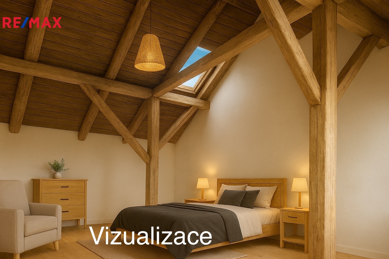 V podkroví zůstaly dvě menší samostatné místnosti, které původně sloužili pro služebné. Střecha potřebuje kompletní rekonstrukci a tudíž se nabízí vytvořit obytné podkroví a případně i střešní terasu, z které by byl krásný výhled na dominantu Červeného kostela se zátiším Krušných hor.