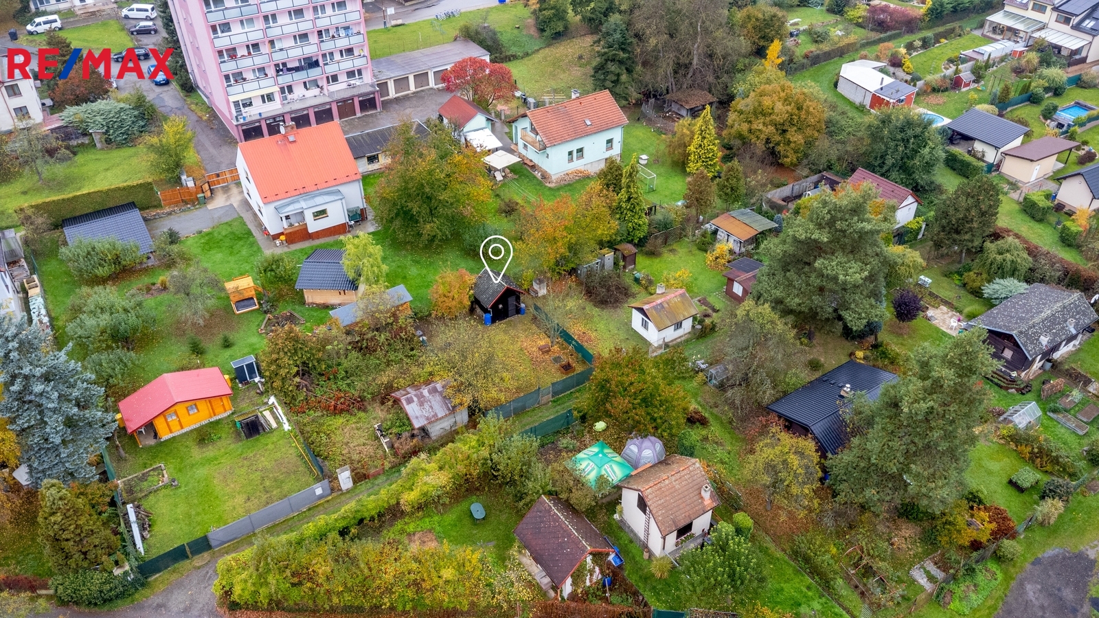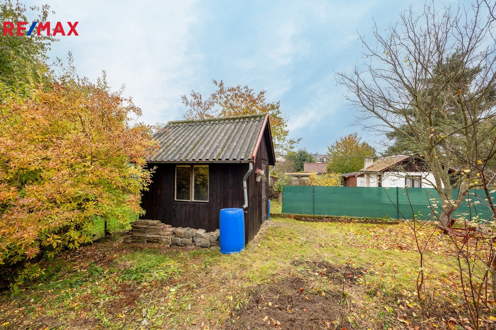 Na pozemku se nachází podsklepený zahradní domek s půdou o zastavěné ploše 9 m² a celkové užitné ploše 17 m².
