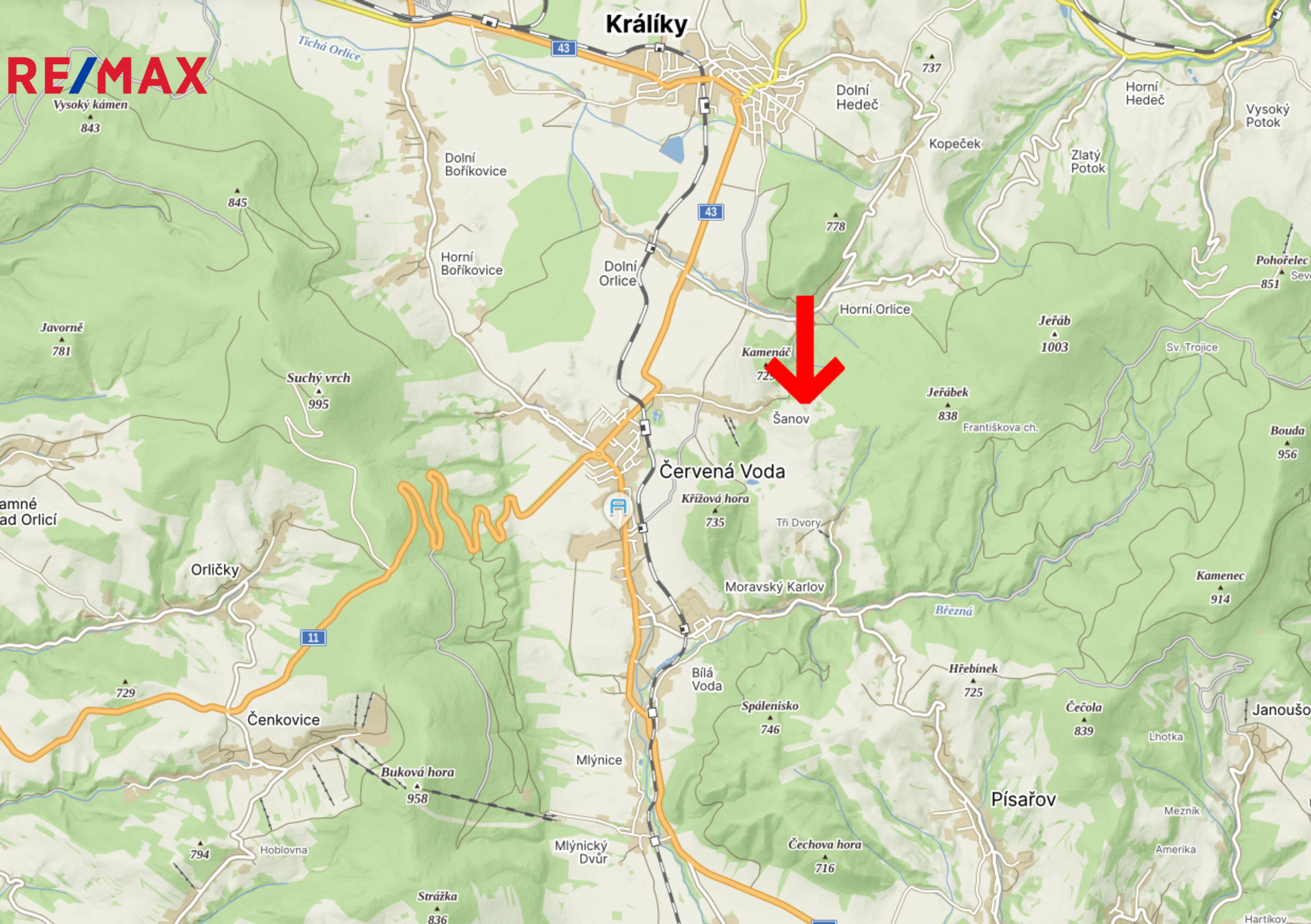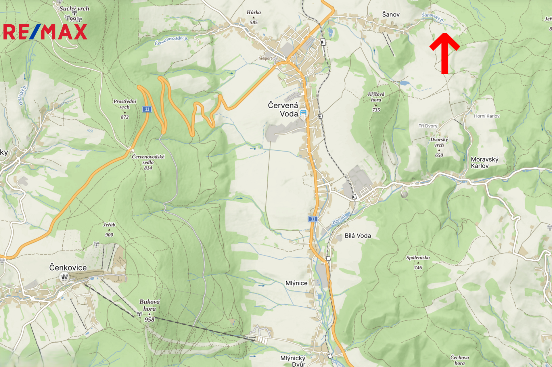 Nabízíme k prodeji pozemek určený k bydlení v části obce Šanov u Červené Vody, obec Červená Voda, okres Ústí nad Orlicí. Pozemek o celkové výměře 1 745 m² se nachází v klidné, mírně svažité lokalitě s výhledy do okolních lesů a horských hřebenů.