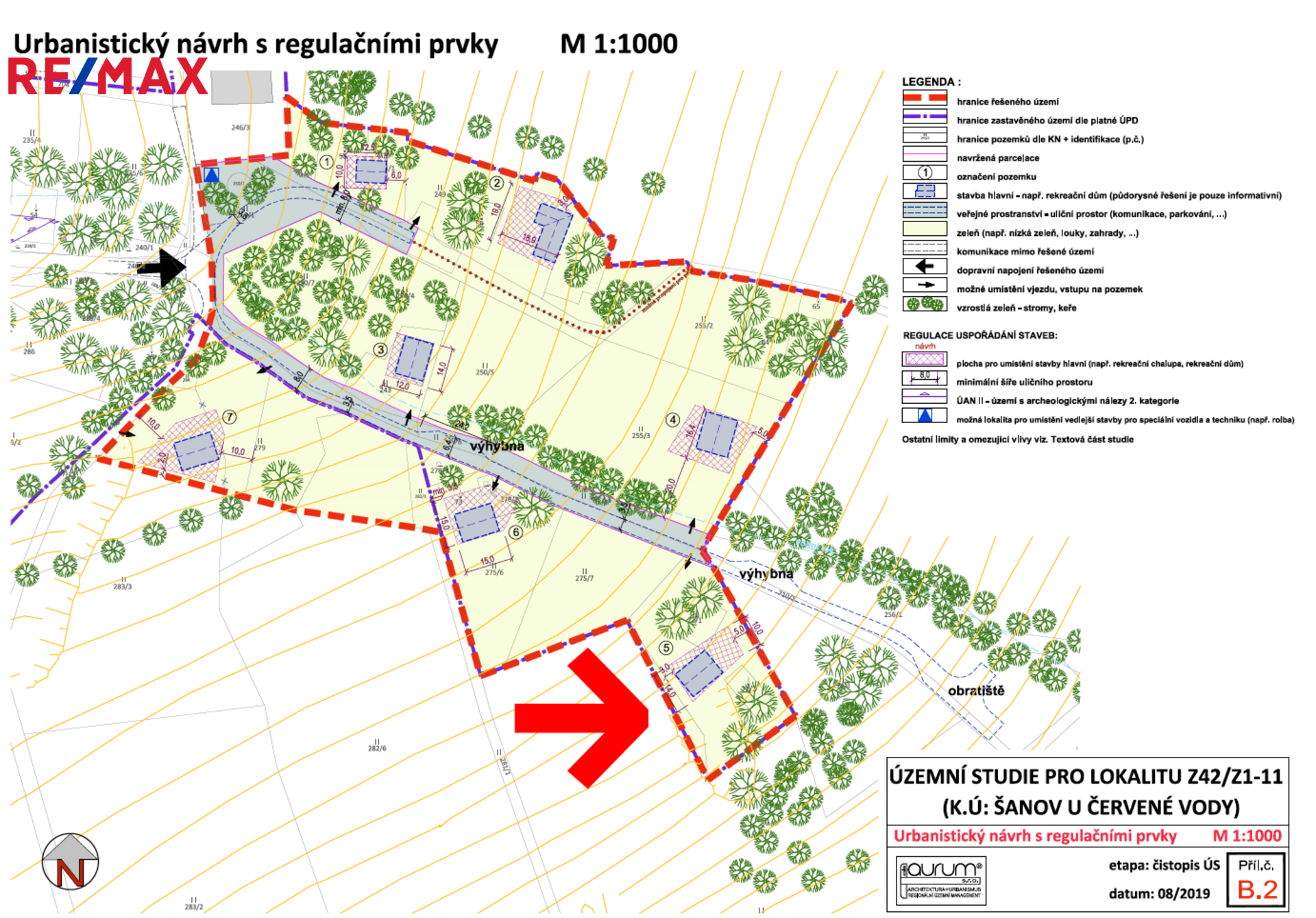 Na lokalitu je již vypracována územní studie, určuje zastavěnou plochu hlavní stavby 70 - 150m², koeficient zastavění je stanoven na 35%.