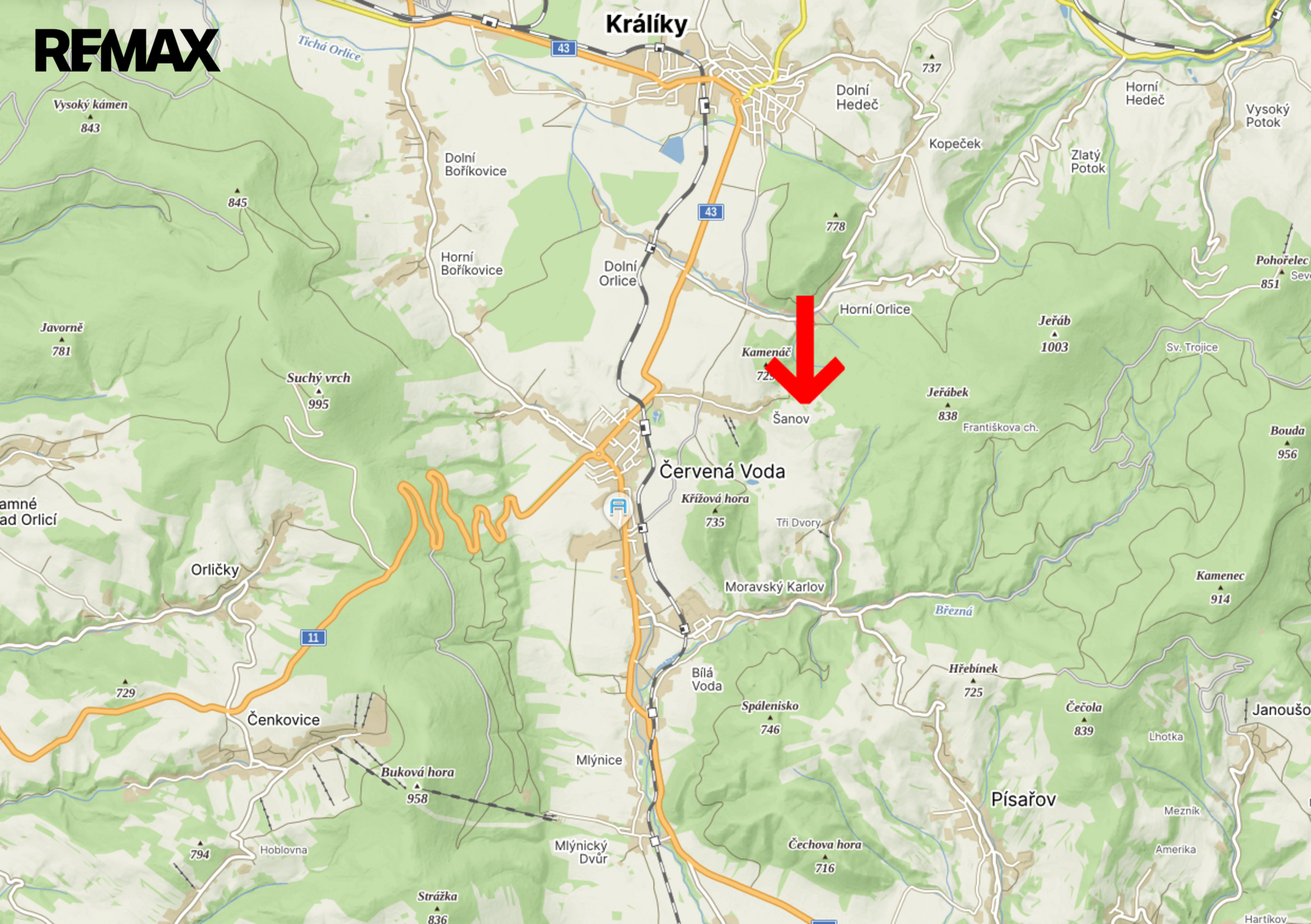 Nabízíme k prodeji pozemek určený k bydlení v části obce Šanov u Červené Vody, obec Červená Voda, okres Ústí nad Orlicí. Pozemek o celkové výměře 1 745 m² se nachází v klidné, mírně svažité lokalitě s výhledy do okolních lesů a horských hřebenů.