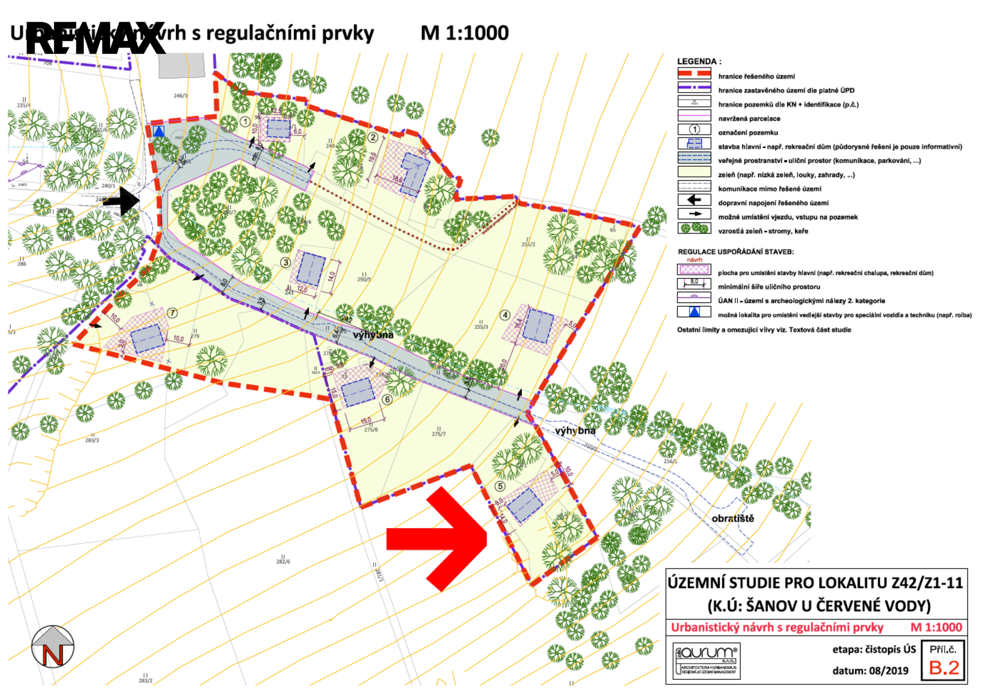 Na lokalitu je již vypracována územní studie, určuje zastavěnou plochu hlavní stavby 70 - 150m², koeficient zastavění je stanoven na 35%.