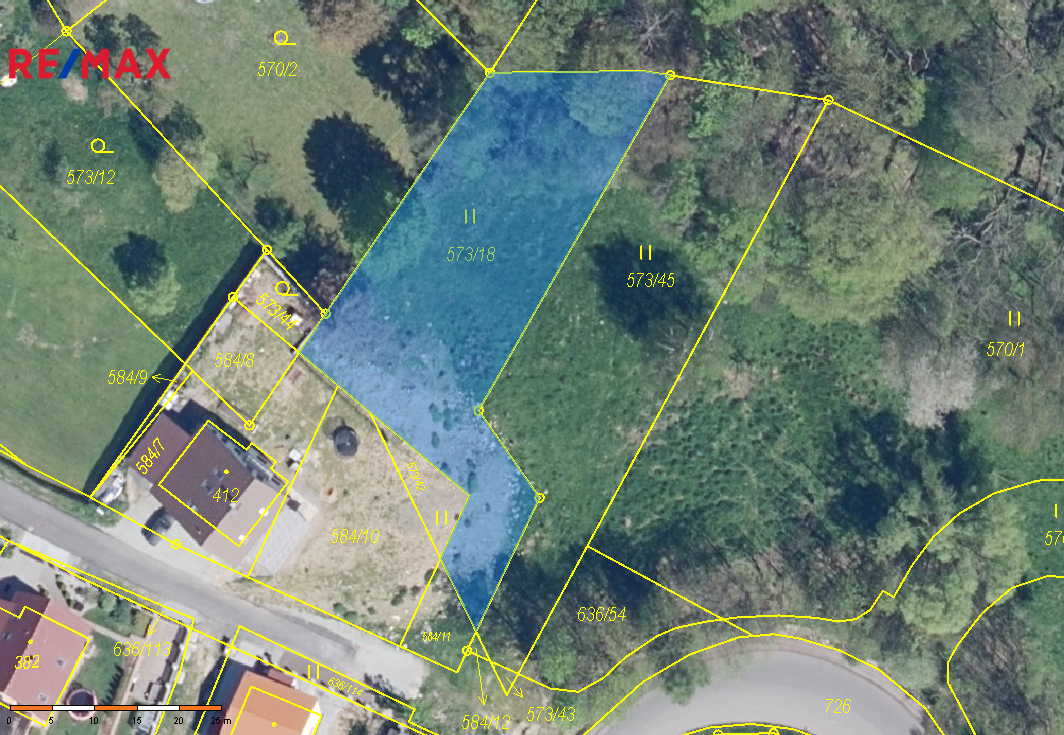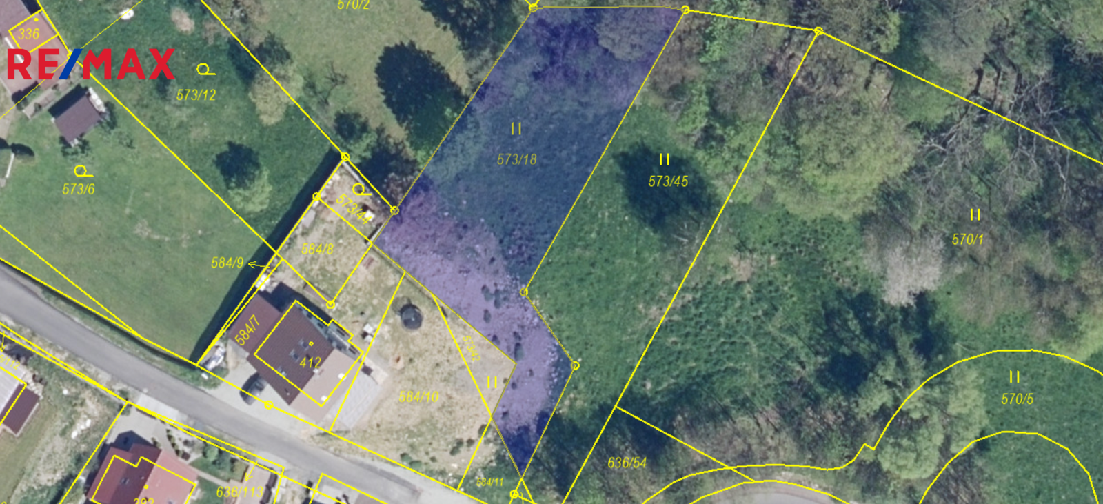 Hlavní pozemek parc. č. 573/18 o rozloze 1 103 m² je dle územního plánu veden jako plocha BI – bydlení individuální, určená pro výstavbu samostatně stojícího rodinného domu venkovského či příměstského charakteru. Přípustná je výstavba rodinného domu obsahujícího maximálně dvě bytové jednotky, a to pod společným uzavřením. Na fotografii je označeno ochranné pásmo lesa. V této oblasti není možné vystavět rodinný dům.