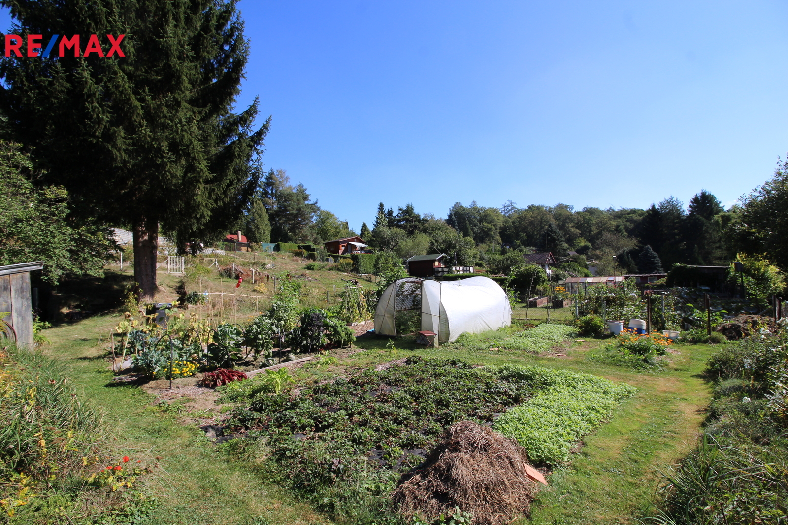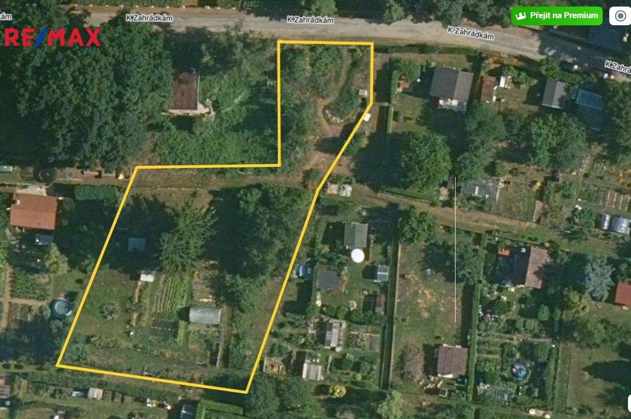 Pozemek je vedenými jako zahrada a je tvořen čtyřmi samostatnými parcelami, což umožňuje případné rozdělení na dva či více menších celků. Mírná svažitost a jižní orientace zajišťují dostatek slunce po celý den. Spodní částí pozemku protéká potok, který díky stavební úpravě slouží jako na vodní nádrž a nabízí dostatečné množství vody. Součástí pozemku jsou malé sklípky vhodné pro uskladnění.
