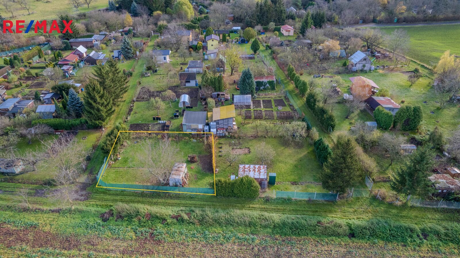 • Na pozemku se nachází maringotka, která slouží jako skladovací prostor.