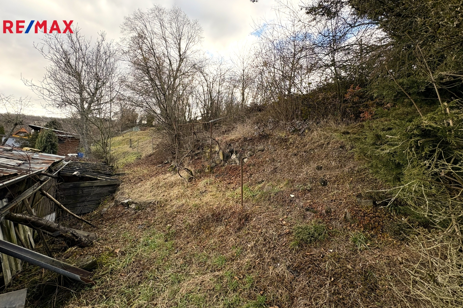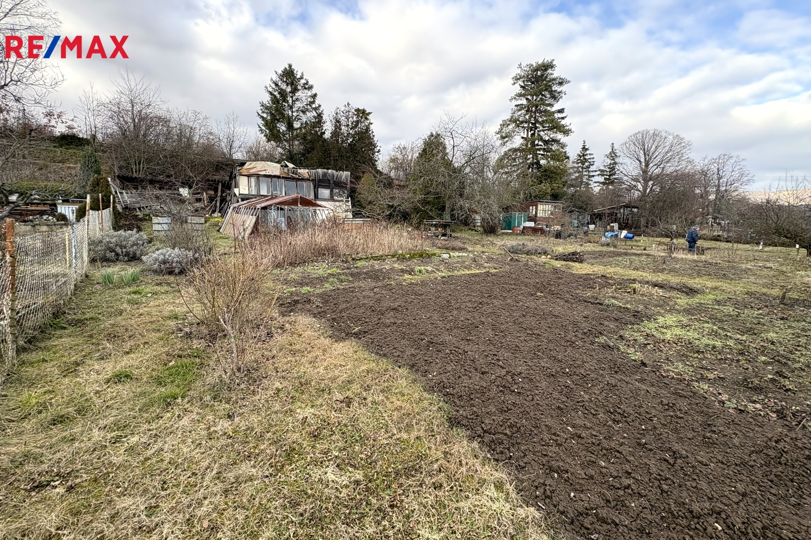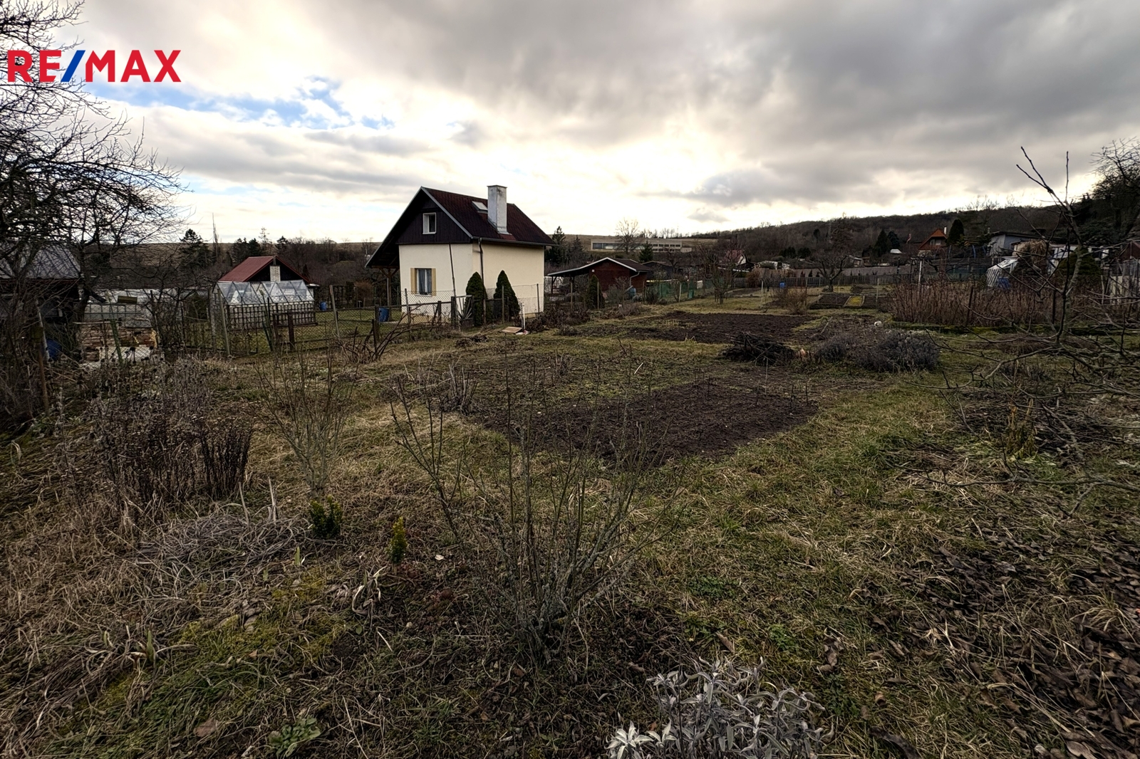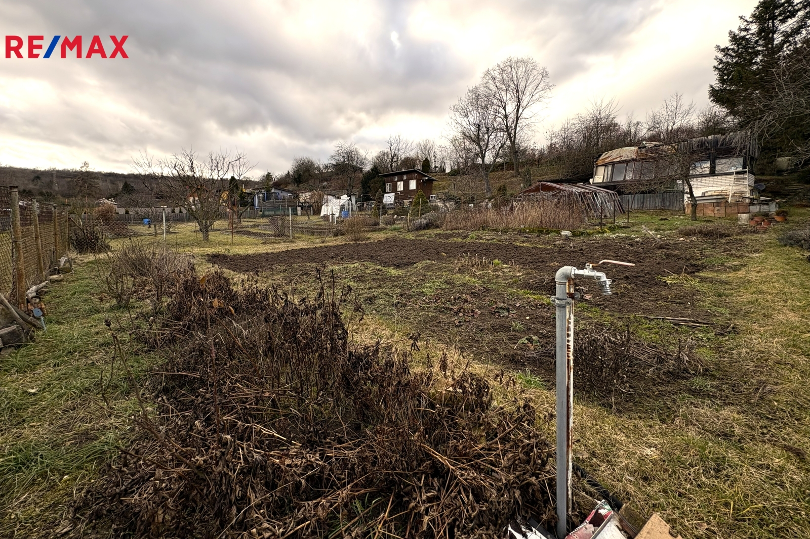 Nenabízím vám zde jen obyčejnou zahradu, ale stavební pozemek pro rekreační využití o celkové výměře 869 m2 z nichž 16 m2 je nyní vedeno samostatně jako zastavěná plocha. V místě je přitom dle regulativu ÚP možno zastavět plochu do 30 m2. To už je pořádná chata k rozjímání či odpočinku. K tomu navíc je pro pozemek schválená elektropřípojka a dále se zde nachází sezónní vodovod s kvalitní pitnou vodou. Mimo jiné zde lze provést vrt a mít tak vodu celoročně. Podle studnaře se voda nachází do 40 m pod povrchem. A ještě jednu výhodu tento pozemek má. A to možnost vstupu na pozemek, jak ze společné cesty uvnitř kolonie tak z horní části u betonové cesty. Odtud z této cesty je to svažité s viditelným terasovitým uspořádáním tohoto svahu. Sousední pozemky však mají vybudovaná schodiště, kterými se na zahrady vstupuje.
