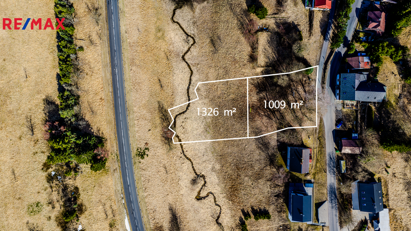 Pozemky mají obdélníkový tvar s orientací západ a východ, druhý pozemek je svažitý. Z pozemku je krásný výhled do širokého okolí. Elektřina na pozemku (el. rozvaděč 3x25 A), kanalizace a voda jsou na hranici pozemku. K pozemku vede asfaltová příjezdová cesta. Zastávka ski busu u pozemku.