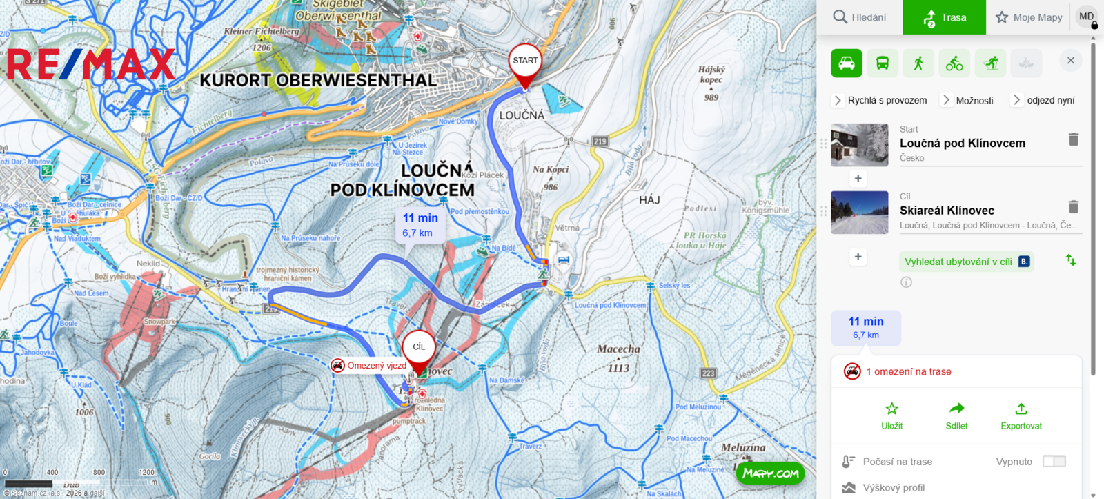 Pozemky se skládají ze dvou parcel (1.326m² stavební a 1.009m² travní porost o celkové výměře 2.335m² ) nacházejí se v klidné obci Loučná pod Klínovcem (10 min od skiareálu KLÍNOVEC). Dle územního plánu je pozemek p.č. 192/29 o výměře 1.326m² určen k výstavbě rodinného domu a v rámci podmíněného využití i bytové domy, stavby pro ubytování či penziony o 2NP + PODKROVÍ.