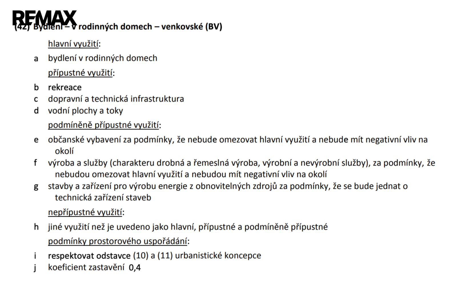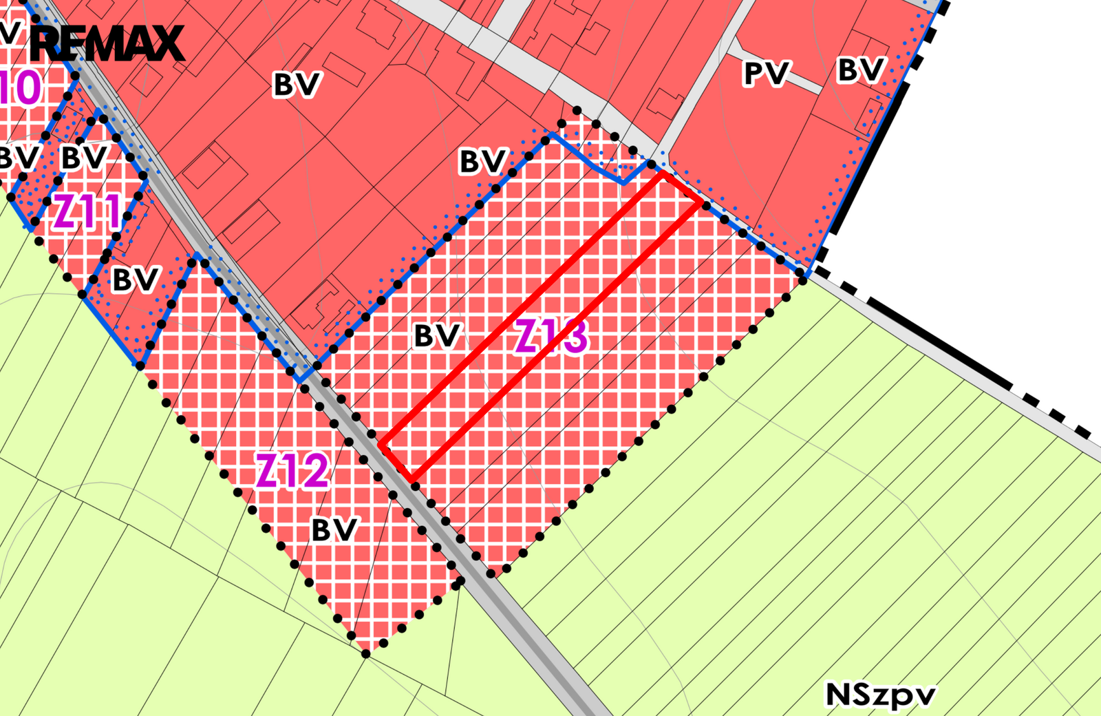 Dle platného územního plánu obce je pozemek součástí zastavitelné plochy s funkčním využitím BV – bydlení venkovské, tedy plochy určené pro budoucí výstavbu rodinných domů. V tomto rozvojovém úseku je plánovaný vznik nových stavebních parcel, přičemž maximální zastavitelnost je stanovena na 40 % plochy každé parcely.