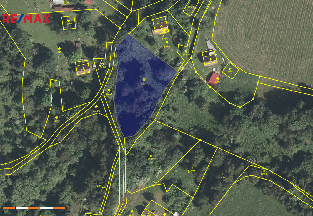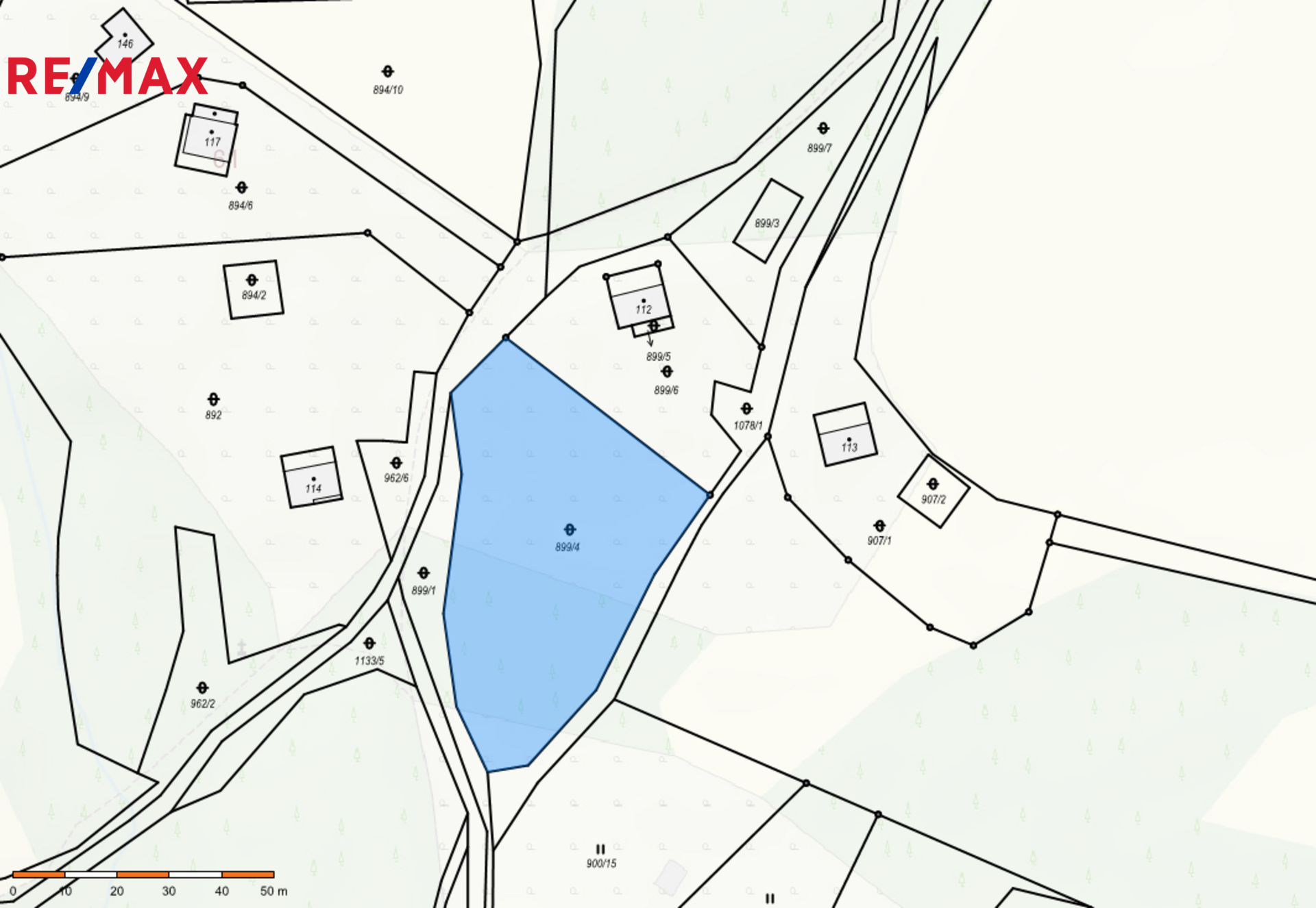 Součástí pozemku je také el. kaplička a dále vrt, což může být významnou výhodou pro budoucí využití pozemku.
