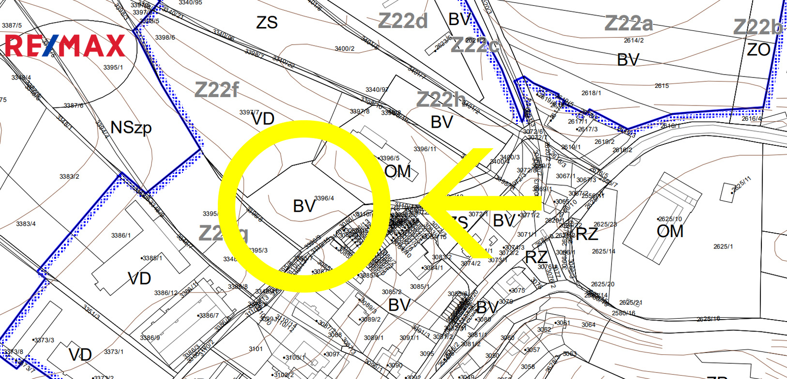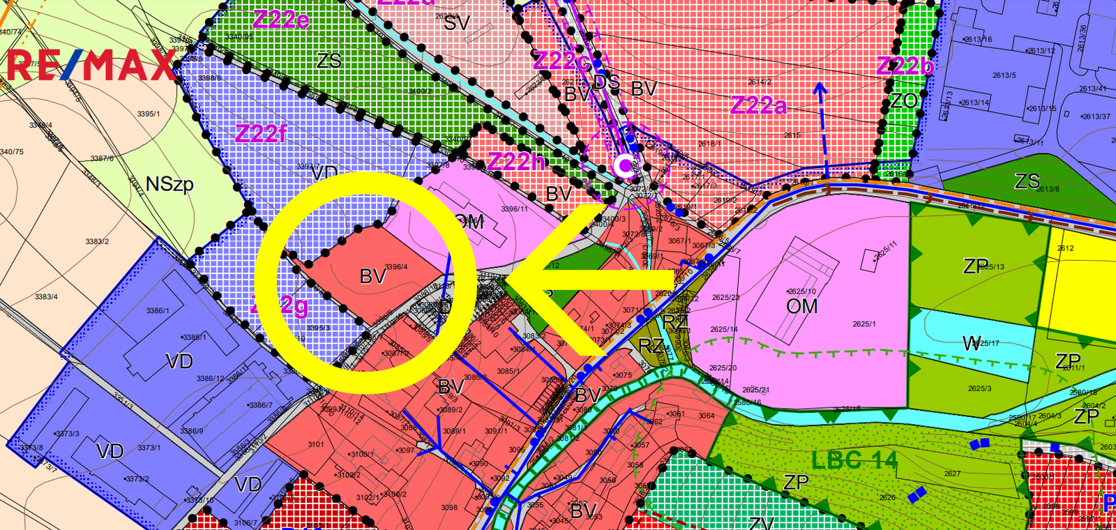 V územním plánu je pozemek označen jako BV, s hlavním využitím k bydlení ve venkovských rodinných domech. Přípustné využití je možné pro některé druhy komerce, např. malovýroby, které jsou slučitelné s bydlením.