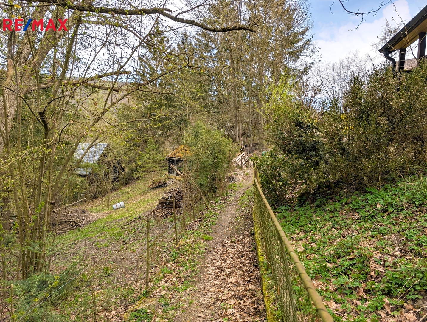 Pozemek je oplocený a nabízí dostatek soukromí. Terén je směrem na jih velmi svažitý. Autem lze dojet přibližně 30 metrů od chaty, dál se cesta zužuje kvůli svahu do údolí a pokračuje se pěšky cestou mezi oplocenými pozemky. Tato trasa po soukromých cestách je dlouhodobě využívána místními chataři jako běžný přístup k rekreačním objektům v okolí.