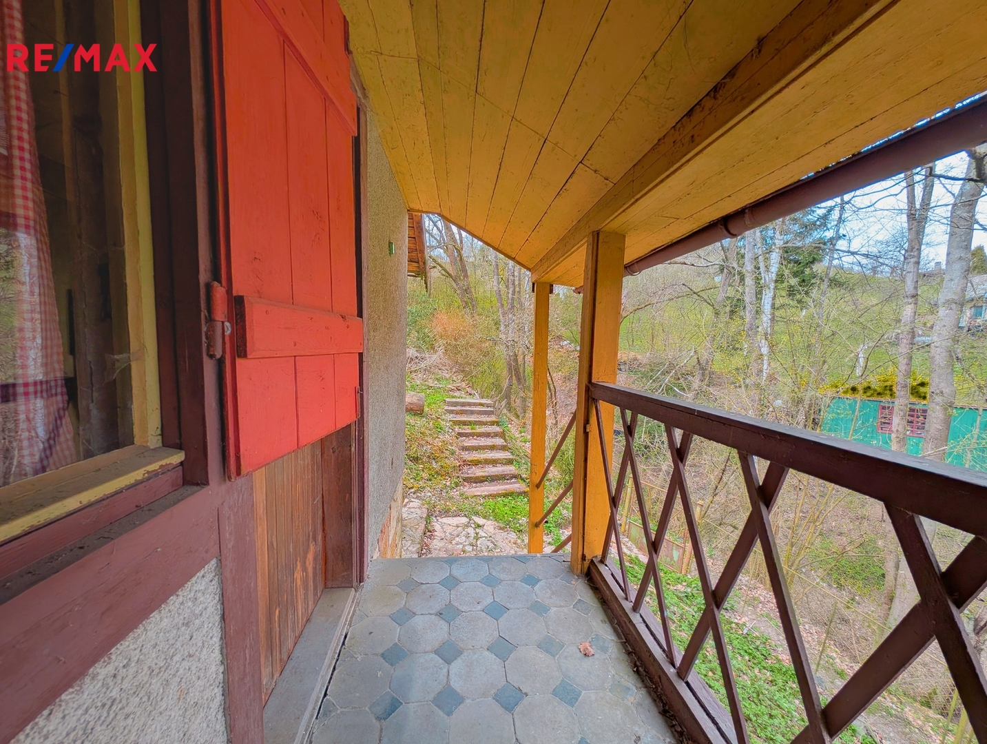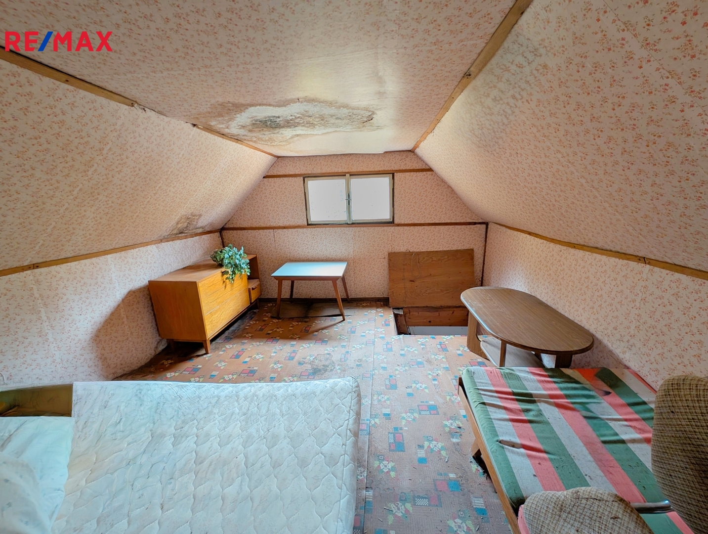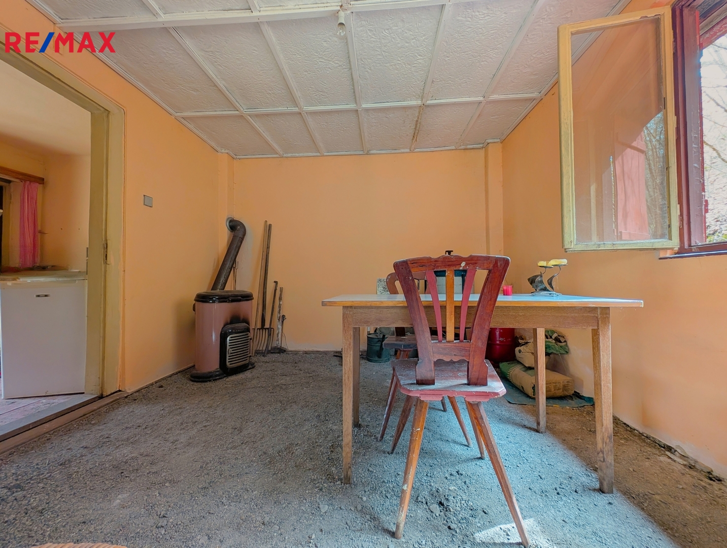 Na pozemku je přivedena elektřina (230 V). V přízemí se nachází dvě místnosti o celkové ploše 20 m², v podkroví pak další místnost o velikosti 13,6 m². Chata je částečně podsklepena (cca 3 m²), vytápění zajišťují kamna na tuhá paliva.