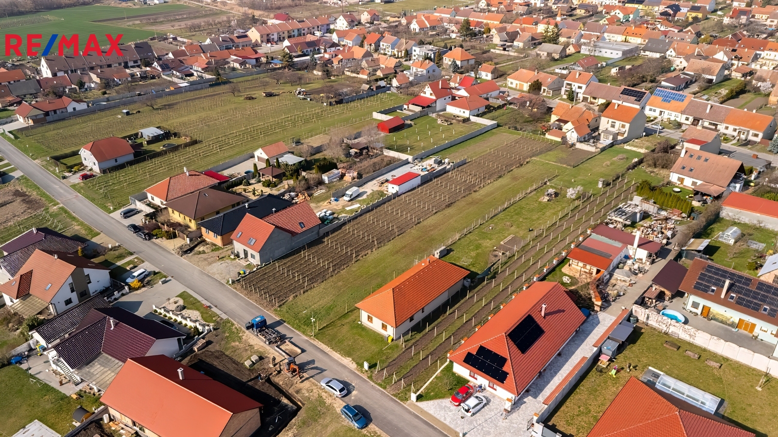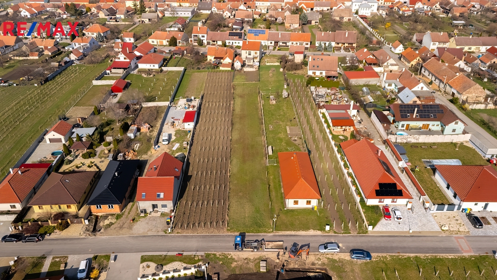 Pozemek má uliční šíři cca 12,4 m a hloubku cca 101 m. Je rovinatý a nachází se v lokalitě, kde převažují novostavby a další pozemky určené k výstavbě. Z jedné strany již stojí rodinný dům, z druhé je vinohrad.