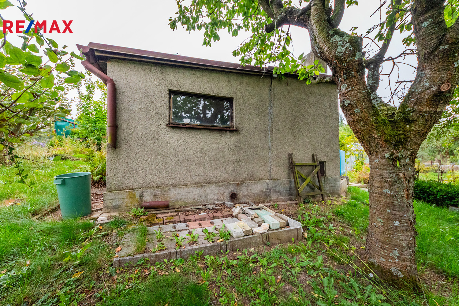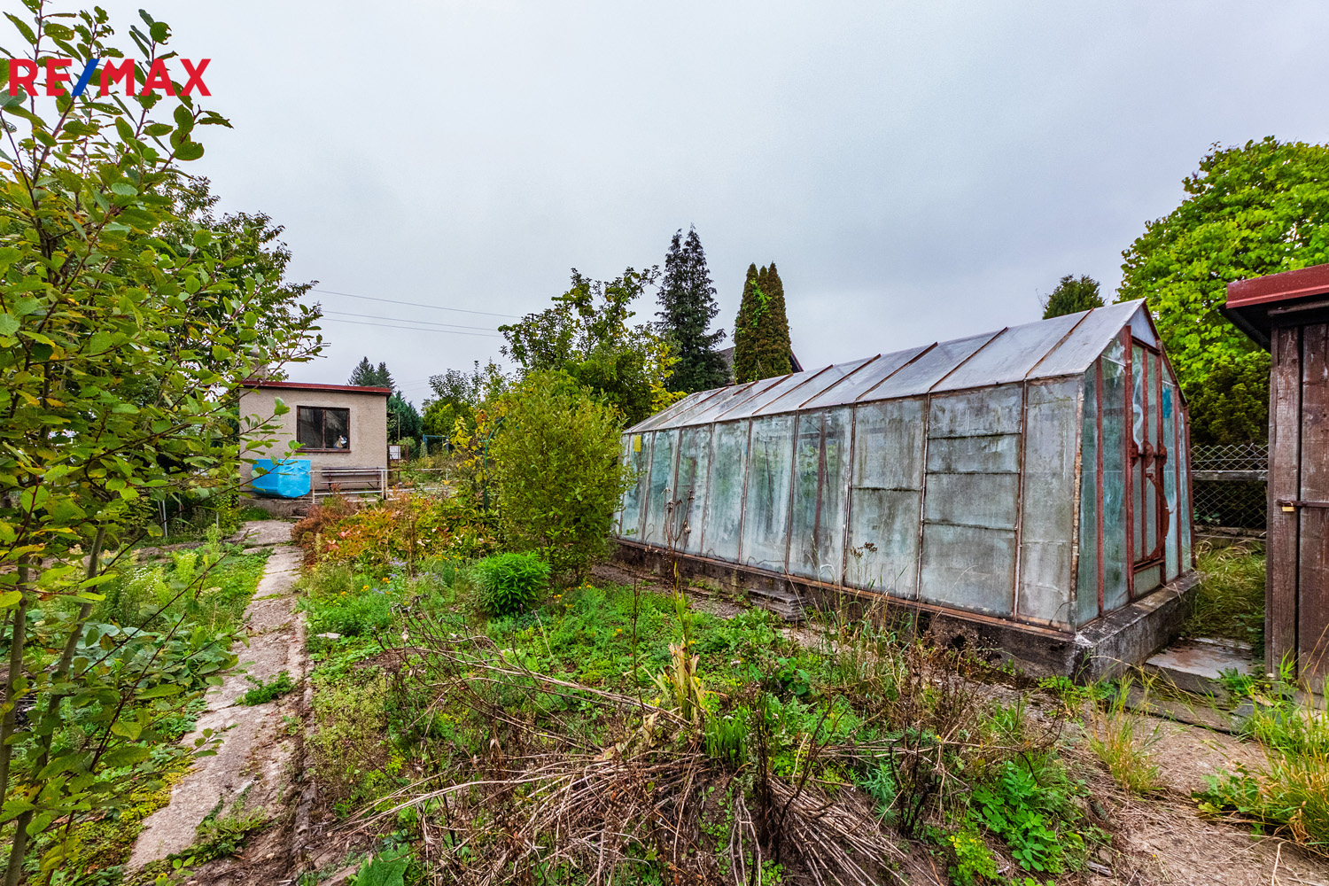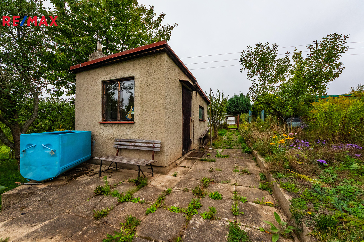 Na pozemku se nachází zděný zahradní domek (12 m²) s malým sklípkem pro uskladnění ovoce a zeleniny, praktický skleník a dřevěná kůlna na nářadí. Zahrada je udržovaná, osázená ovocnými stromy a nabízí dostatek prostoru pro odpočinek, grilování či dětské hry. Domek lze využít také jako hernu, dílnu nebo ateliér.