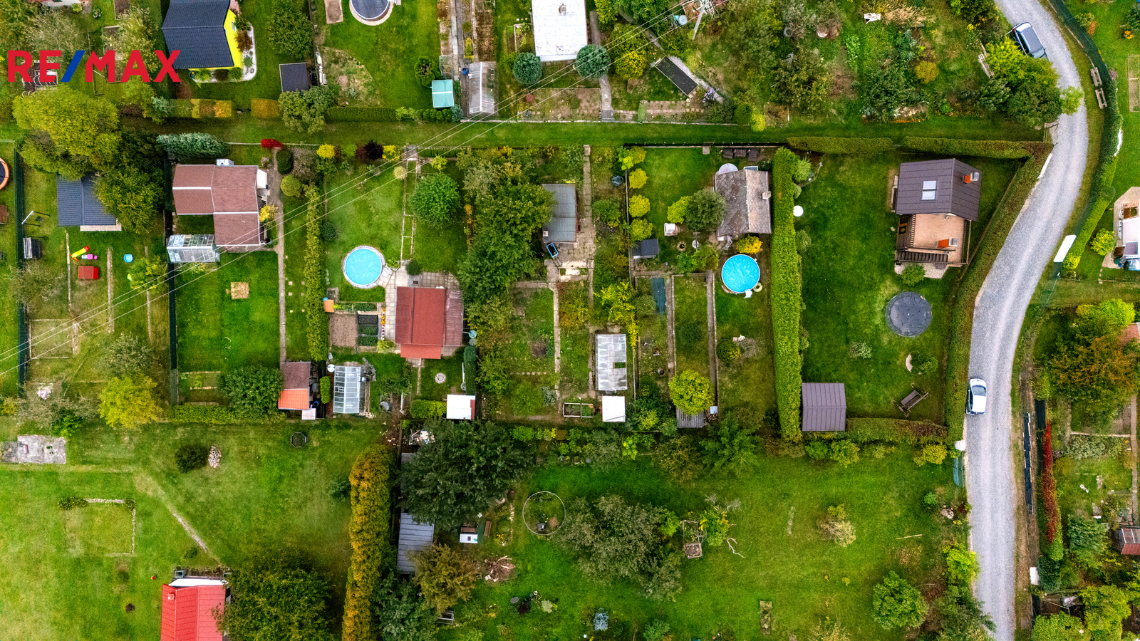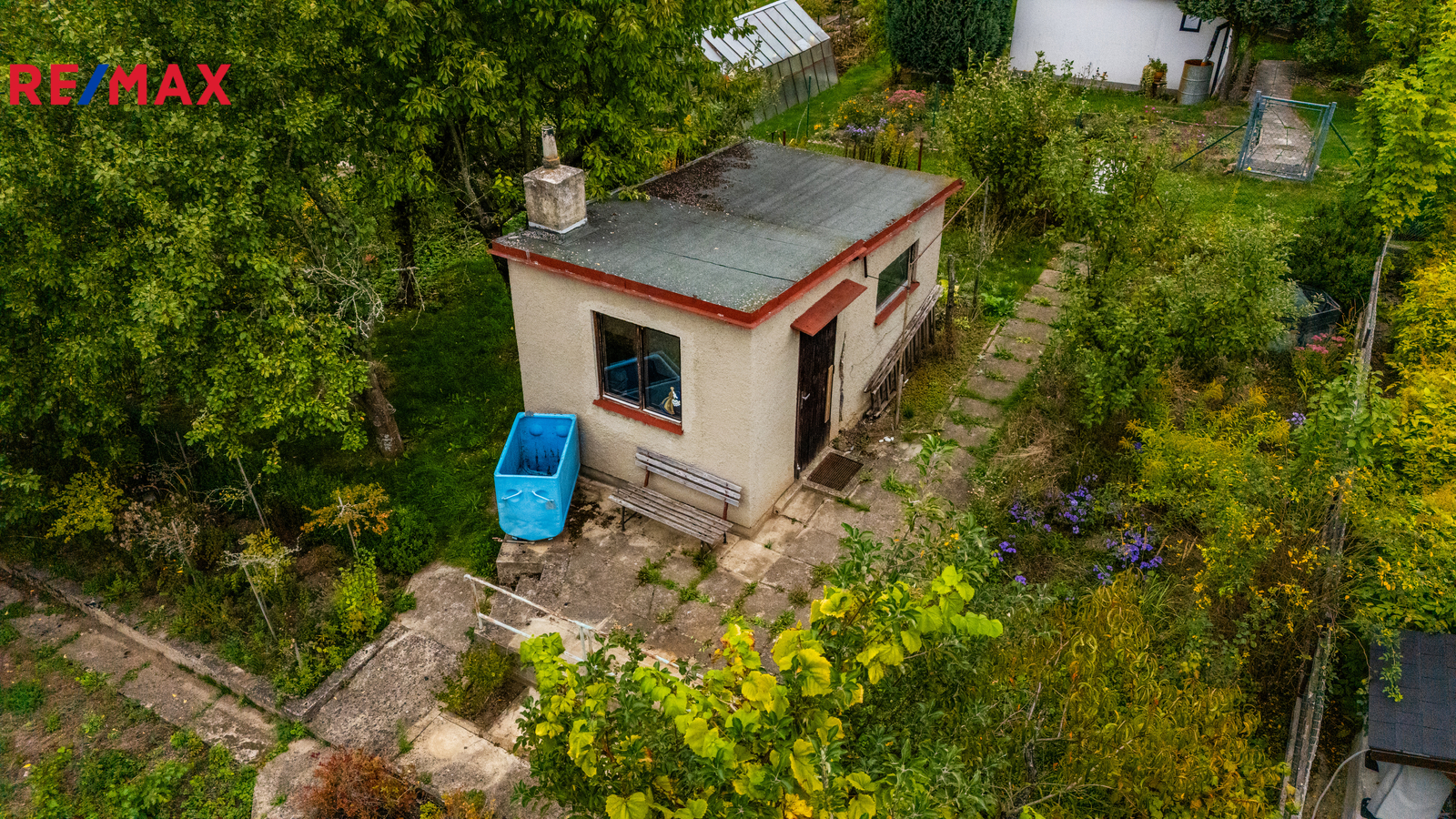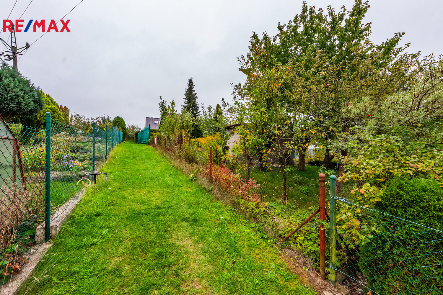 Na pozemku se nachází zděný zahradní domek (12 m²) s malým sklípkem pro uskladnění ovoce a zeleniny, praktický skleník a dřevěná kůlna na nářadí. Zahrada je udržovaná, osázená ovocnými stromy a nabízí dostatek prostoru pro odpočinek, grilování či dětské hry. Domek lze využít také jako hernu, dílnu nebo ateliér.