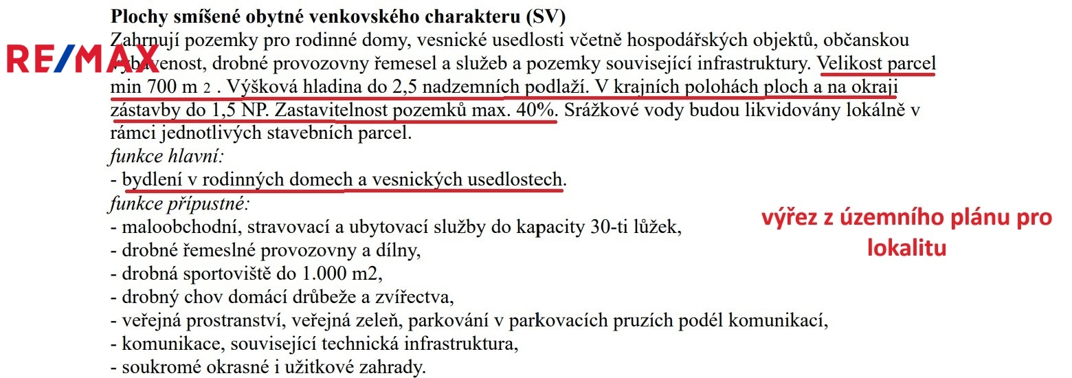 Zastavitelnost pozemku podle územního plánu: maximálně 40%.