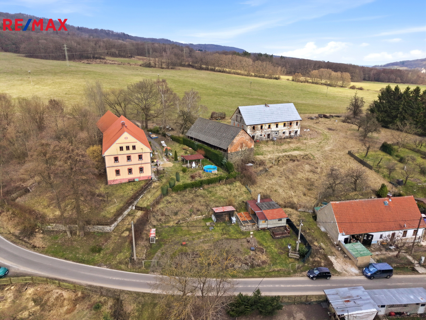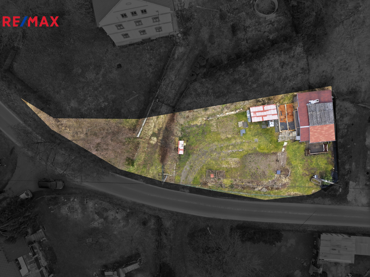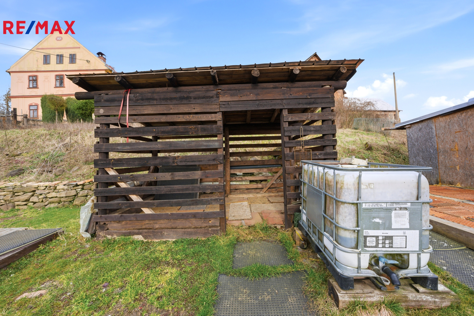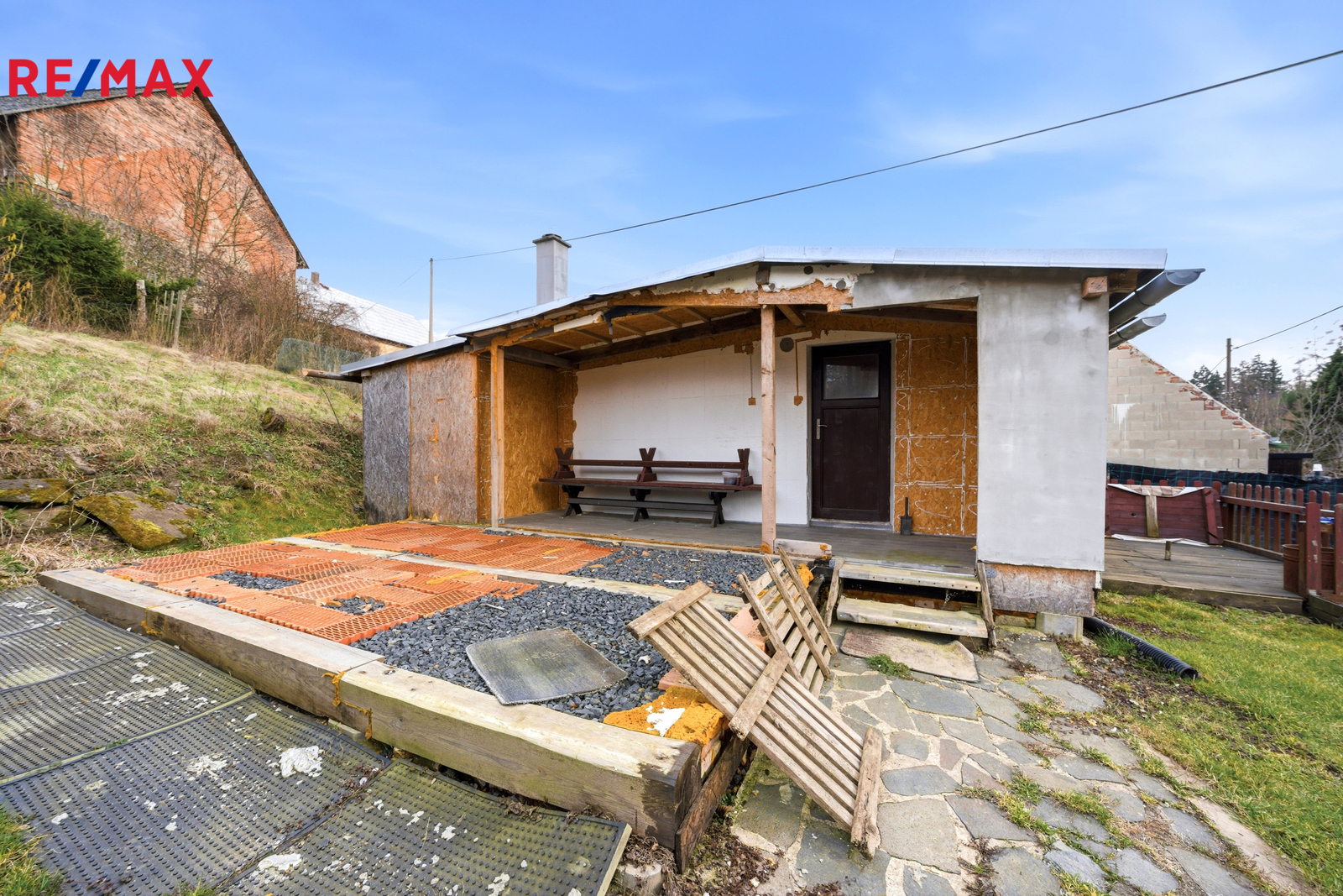 Na pozemku se nachází jednoduchá dřevěná chata, která je bez pevných základů a je umístěna na patkách. Do chaty je zavedena elektřina a odpady jsou řešeny jímkou o objemu 2 m³. Na pozemku se dále nachází zkušební vrt o hloubce 22 metrů, který může sloužit jako základ pro vlastní zdroj vody.