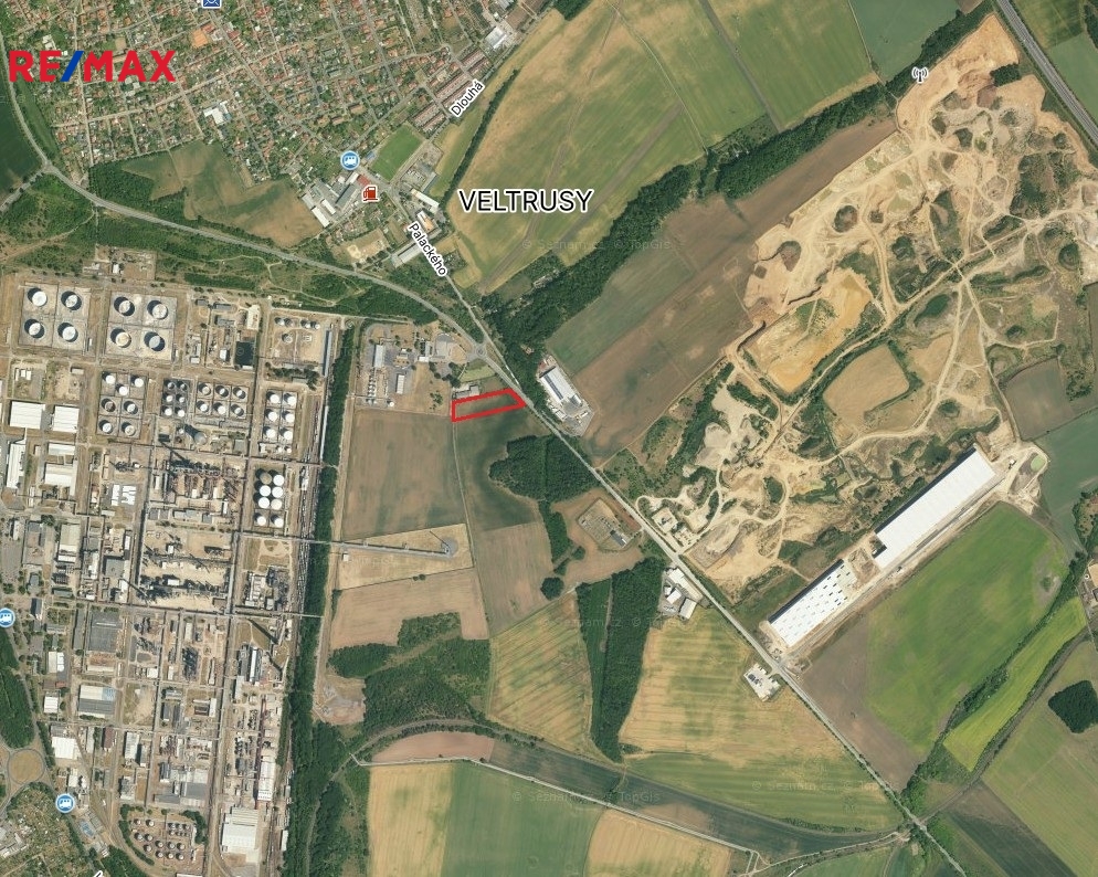 Prodej dvou sousedících komerčních pozemků – celkem 10 837 m² v rozvíjející se průmyslové zóně Veltrusy nedaleko exitu č. 9 dálnice D8.