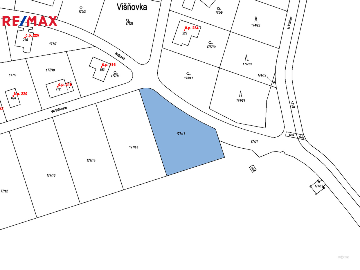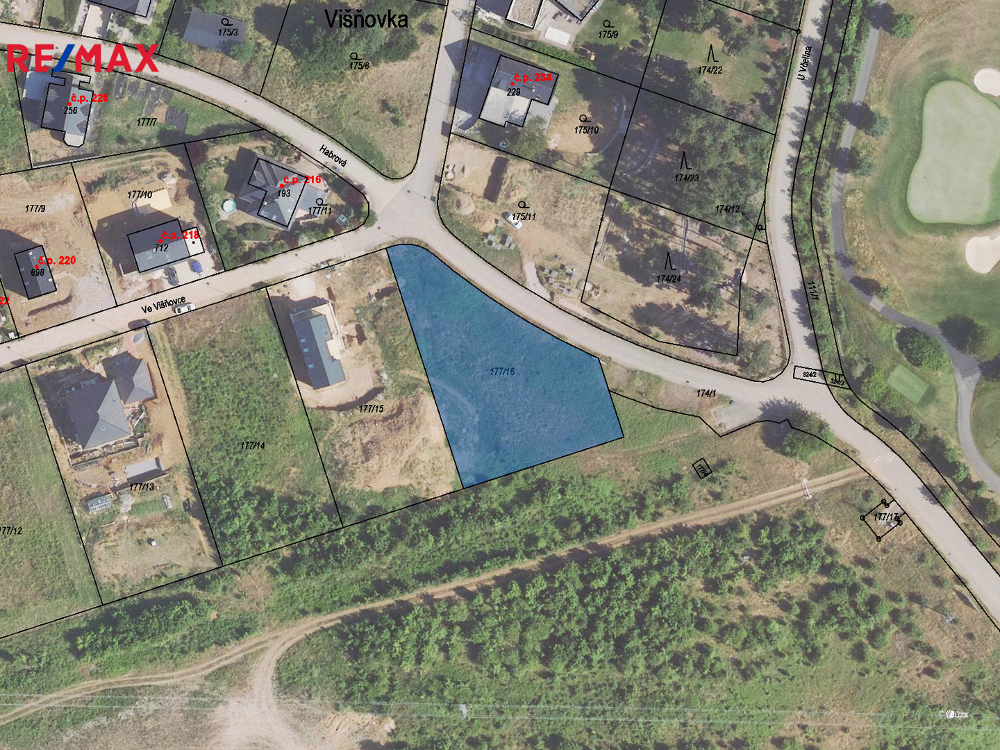 Pozemek se nachází na doslova unikátním místě - výjimečně tichá a odloučená lokalita s množstvím zeleně a omezeným počtem novostaveb, přímo za golfovým rezortem (roh ulic Habrová a Ve Višňovce).